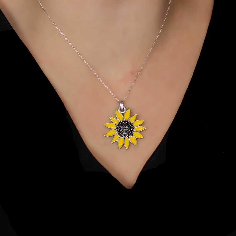 925 Ayar Gümüş Sarı Mineli Ayçiçek Kolye