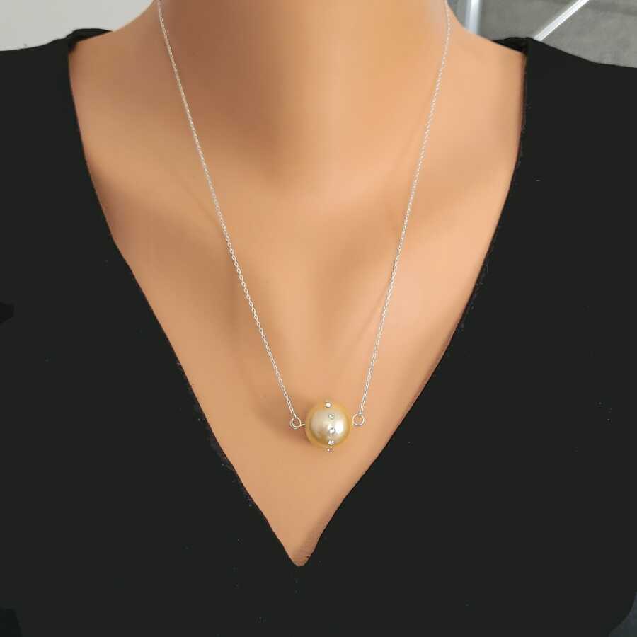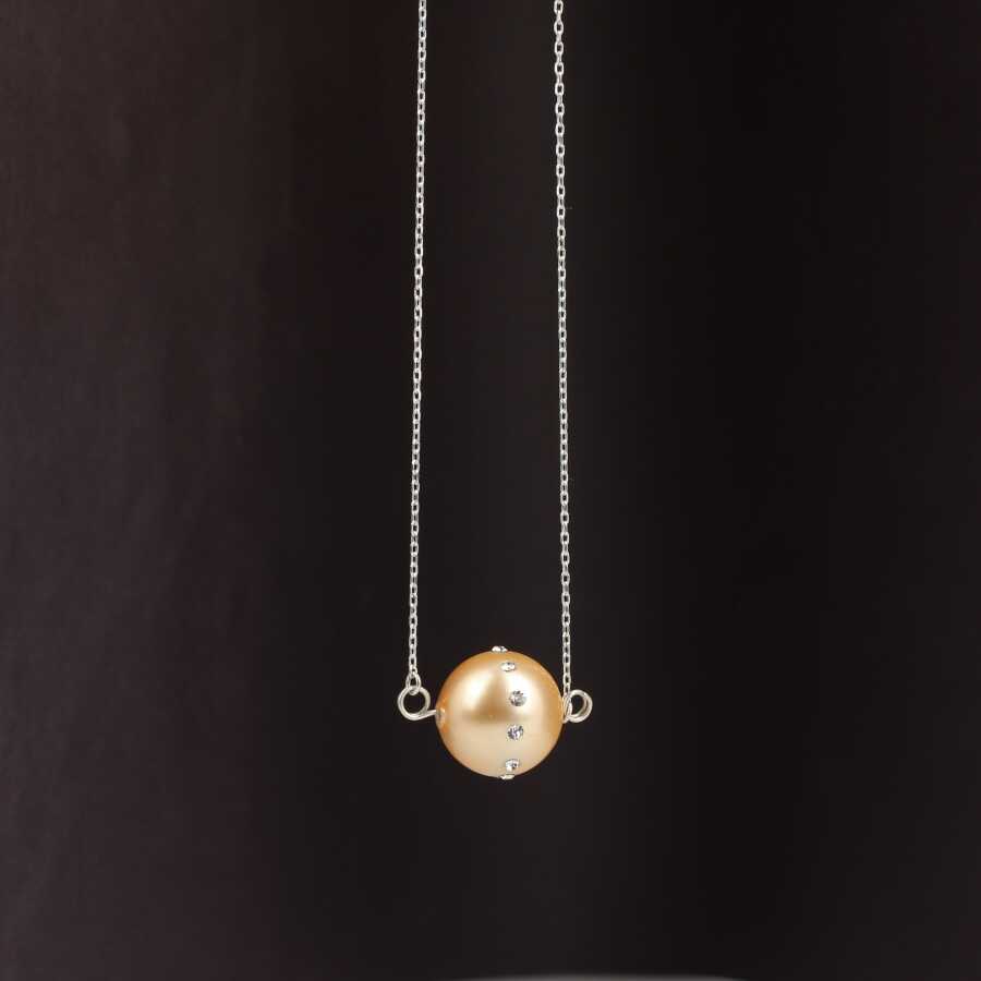 925 Ayar Gümüş Sarı Renk İncili Üzeri Zirkon Taşlı Kolye