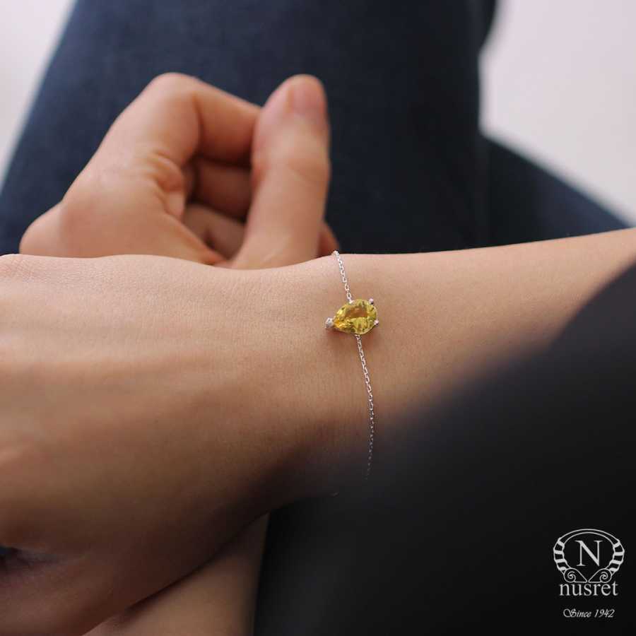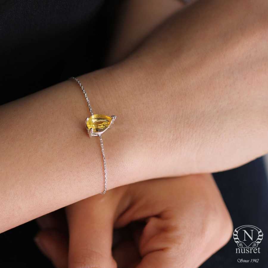 925 Ayar Gümüş Sarı Sitrin Taşlı Bileklik