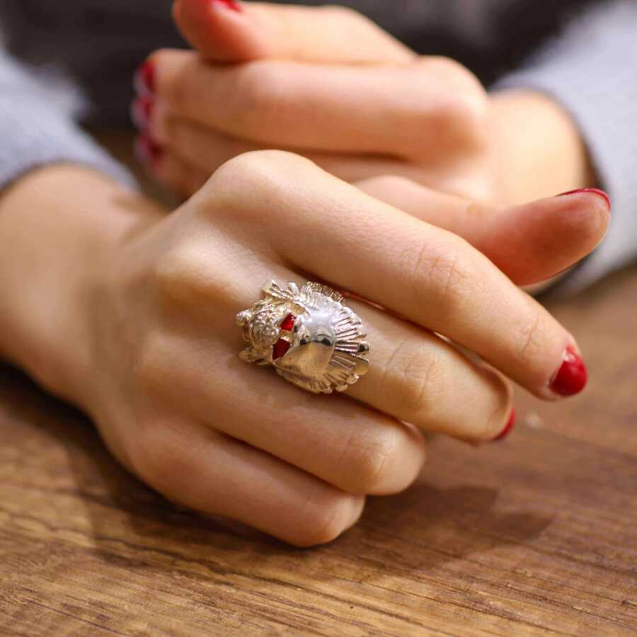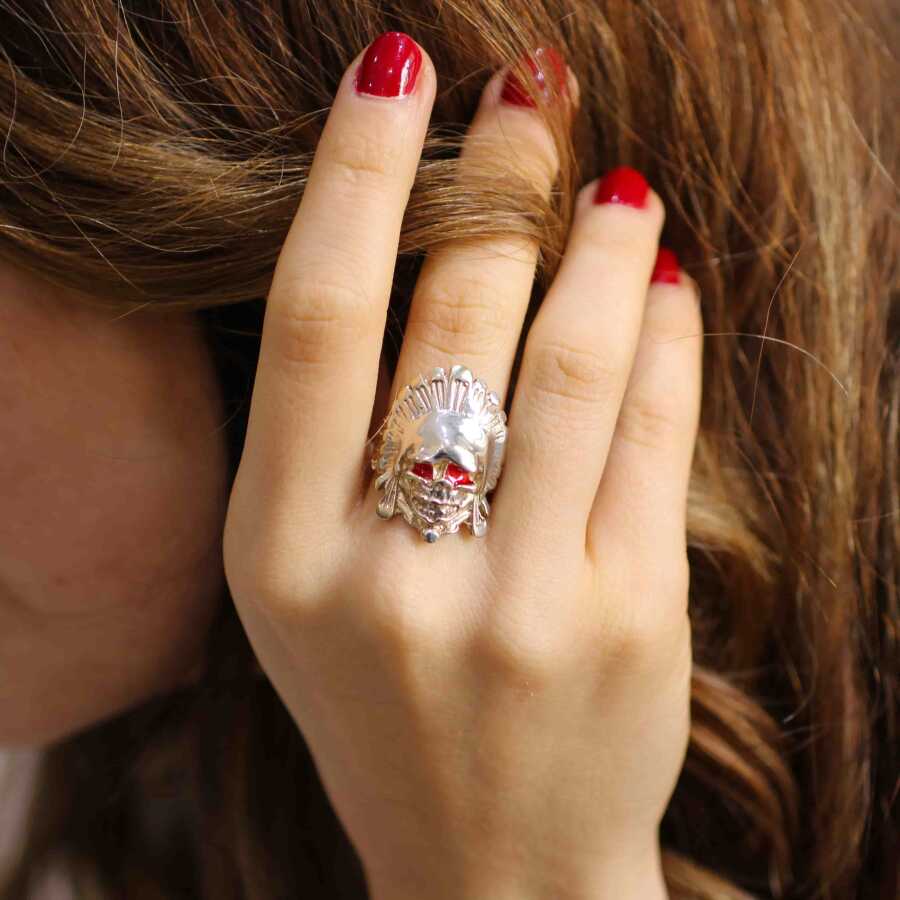Yüzük 925 ayar gümüşten üretilmiştir. Savaşçı Kızılderili kafası şeklinde yüzük 3,0 cm'ye 2,1 cm boyutlarındadır. Resimdeki yüzük 17 ölçüdür, ancak tüm ölçüler yapılabilmektedir. Yüzük taşsız ve minelidir. Ağırlığı 8,78 gramdır.