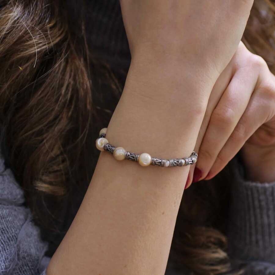 Bileklik 925 ayar gümüşten imal edilmiştir. Gümüş parçalı model bileklik 0,8 cm eninde ve 22 cm uzunluğundadır. Bileklik sedef taşlıdır. Bileklik taş aralarında gümüş parçalar kullanılarak tasarlanmıştır. Gümüş bileklik 20,11 gram ağırlığındadır.