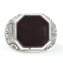 Yüzük 925 ayar gümüşten üretilmiştir. Yüzüğün üzerinde el kalemi atılarak tasarlanmıştır. Taşlı yüzük 1,9 cm boyutlarındadır. Resimdeki yüzük 31 ölçüdür, ancak tüm ölçüler özel olarak yapılabilmektedir. Yüzük mor renk sıkma kehribar taşlıdır. Ağırlığı 26,67 gramdır.