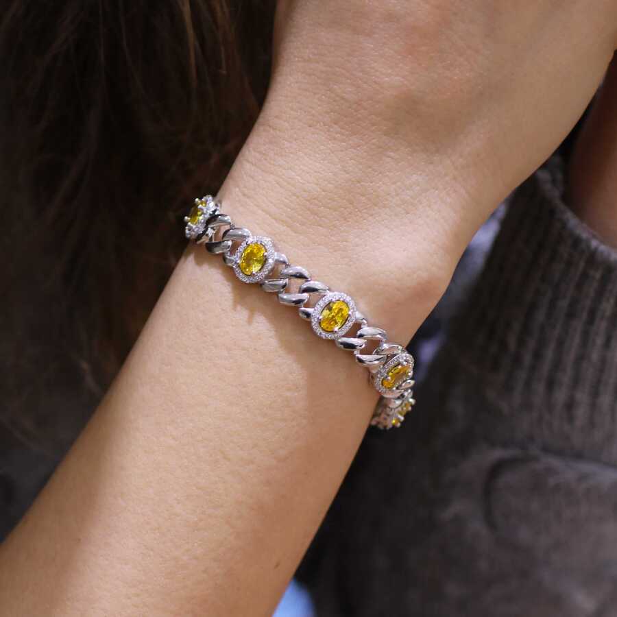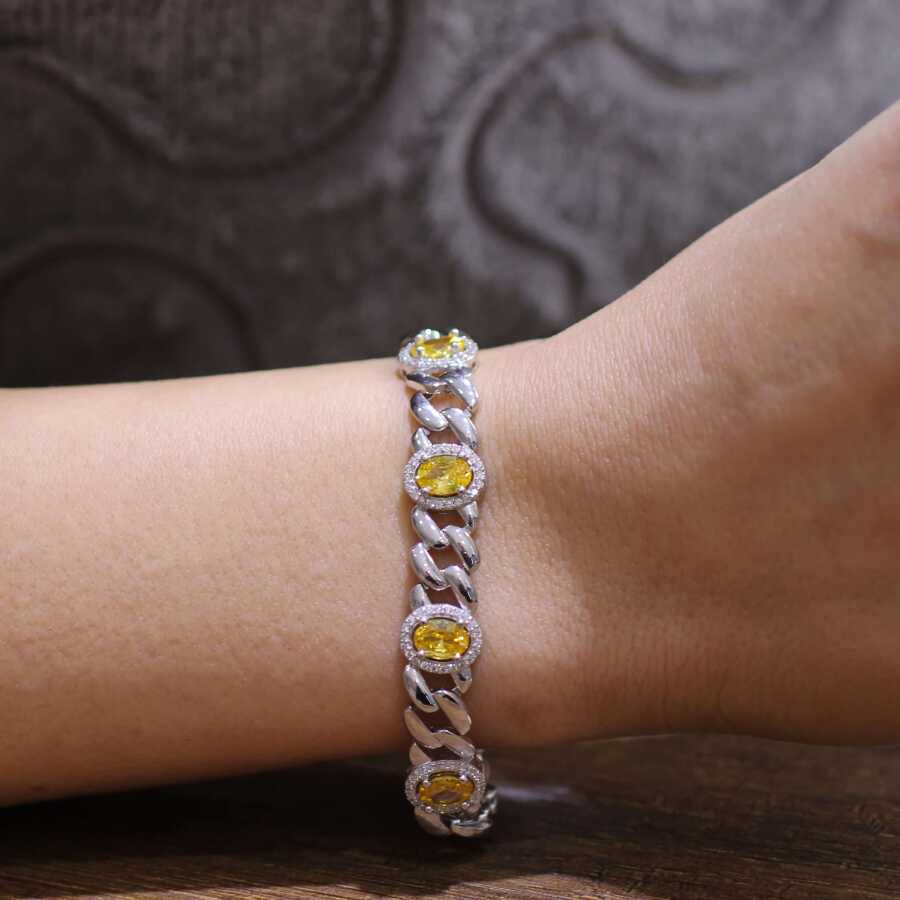 925 Ayar Gümüş Sekizli Sitrin Taşlı Bileklik