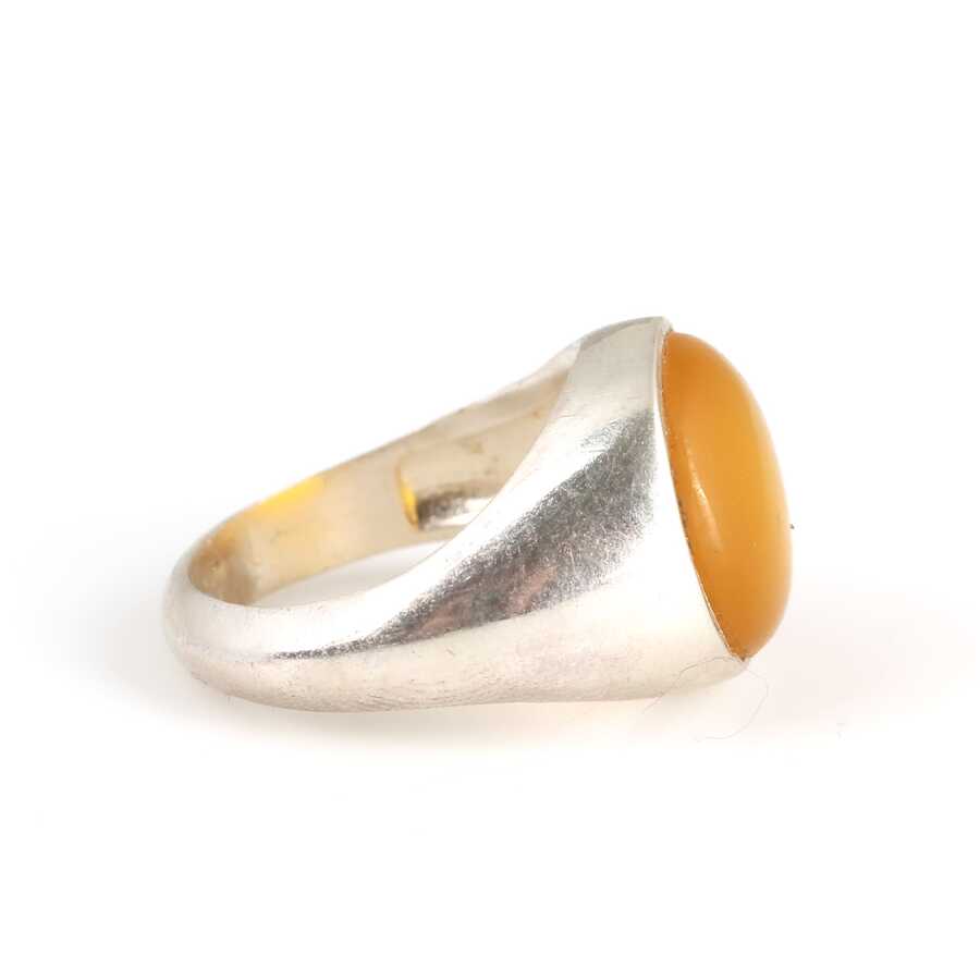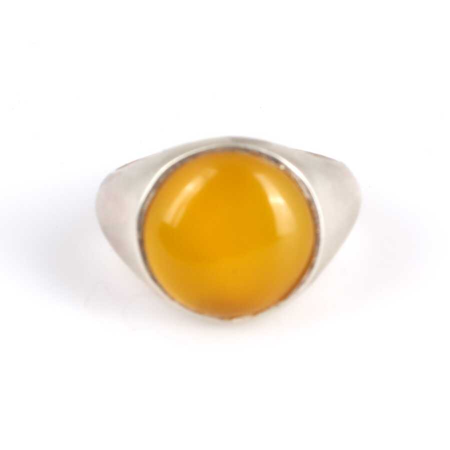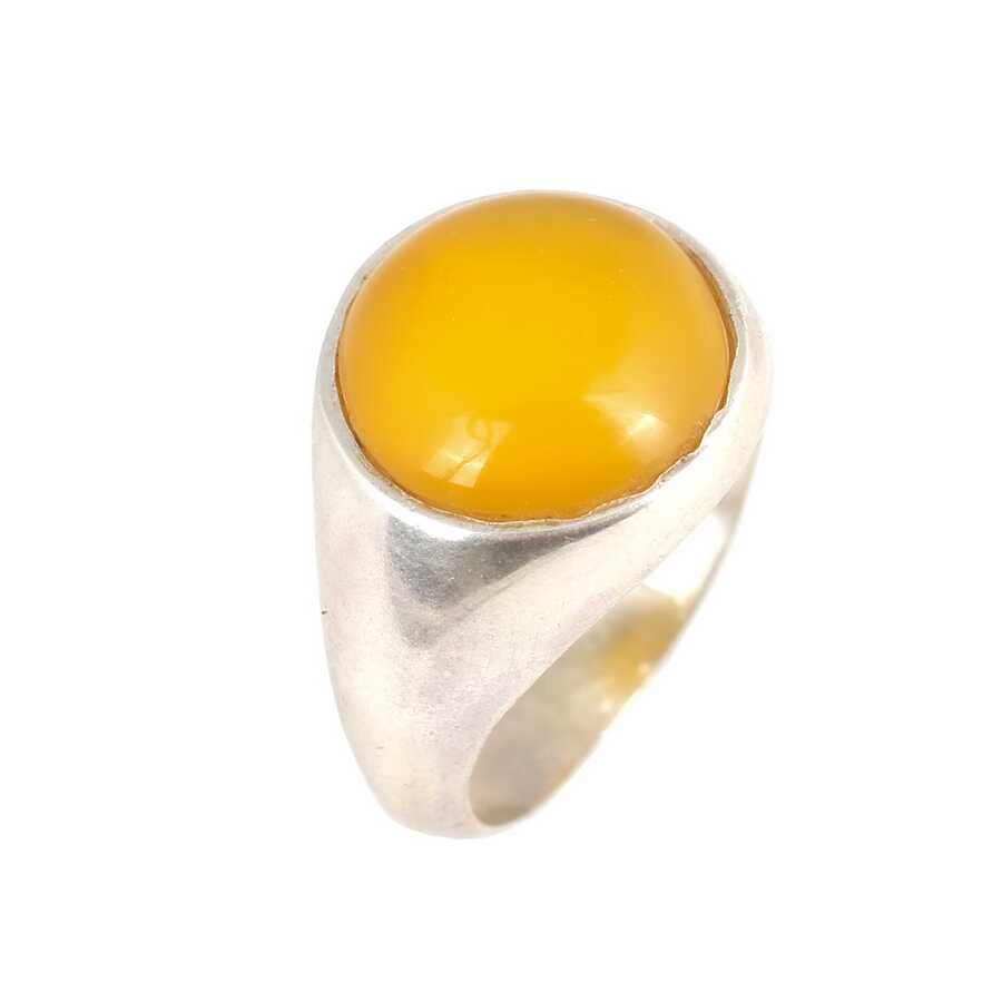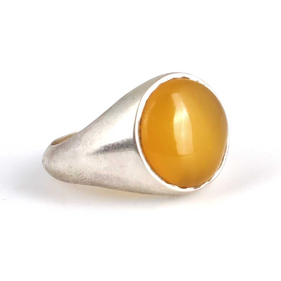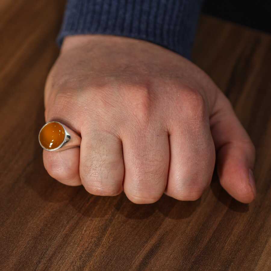 925 Ayar Gümüş Sentetik Kehribar Taşlı Yuvarlak Erkek Yüzük