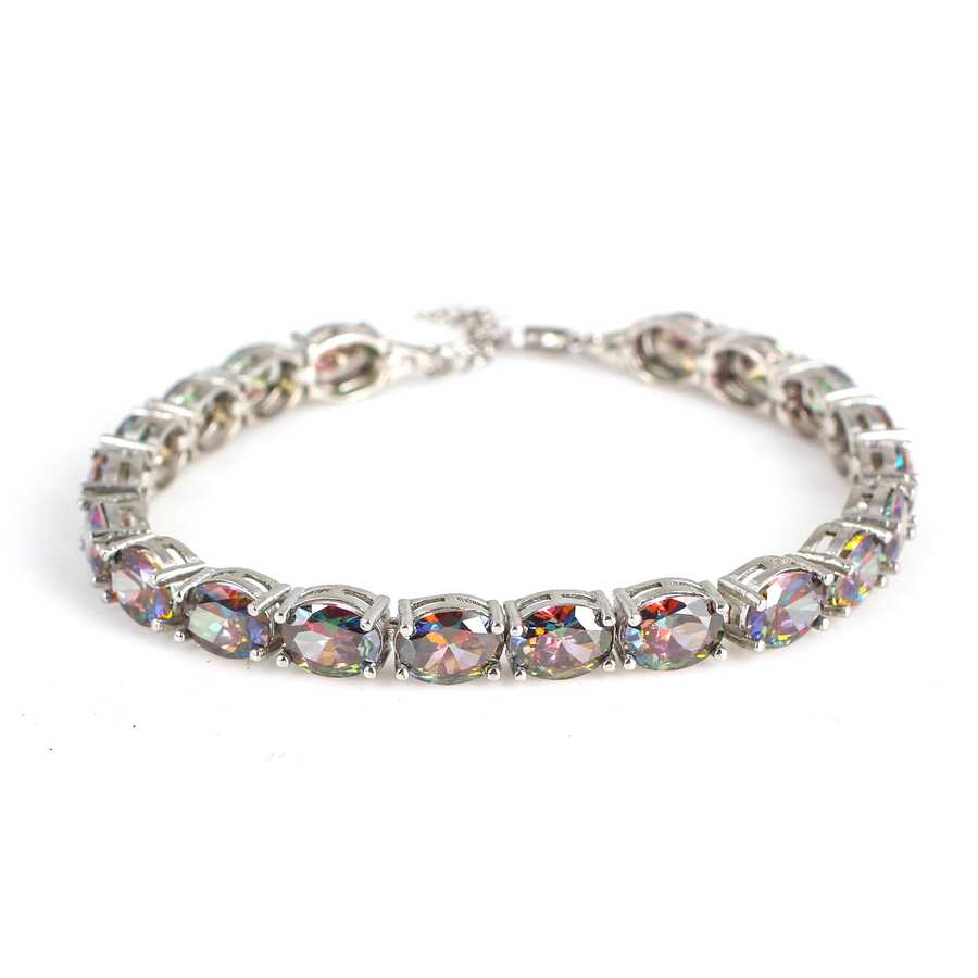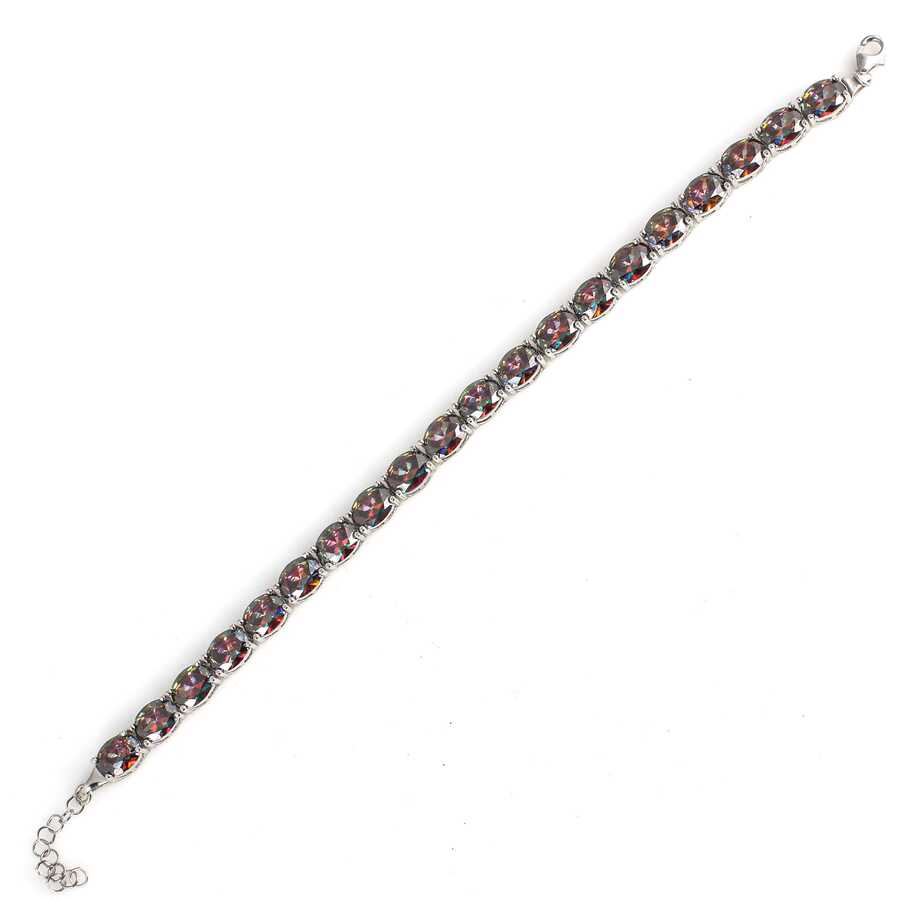 925 Ayar Gümüş Sentetik Mistik Topaz Taşlı Büyük Boy Suyolu Bileklik