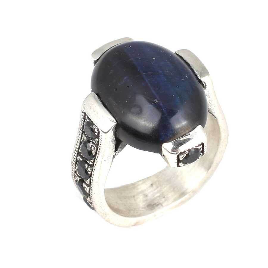 925 Ayar Gümüş Kaplan Gözü Taşlı Erkek Yüzük