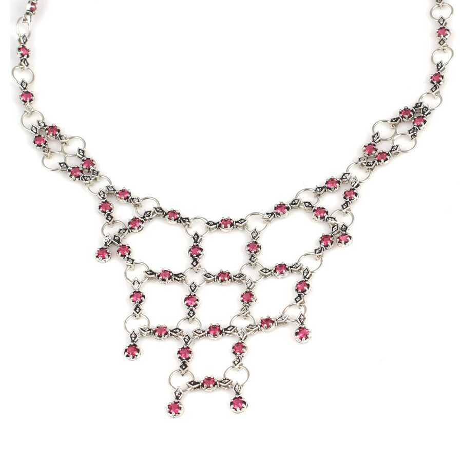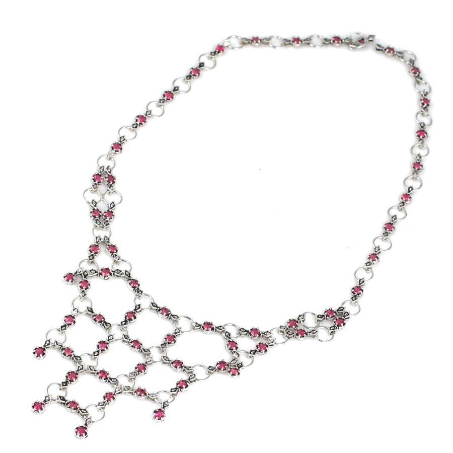 925 Ayar Gümüş Sentetik Yakut Taşlı Gerdanlık