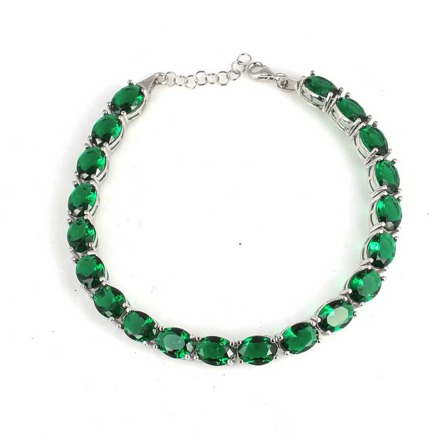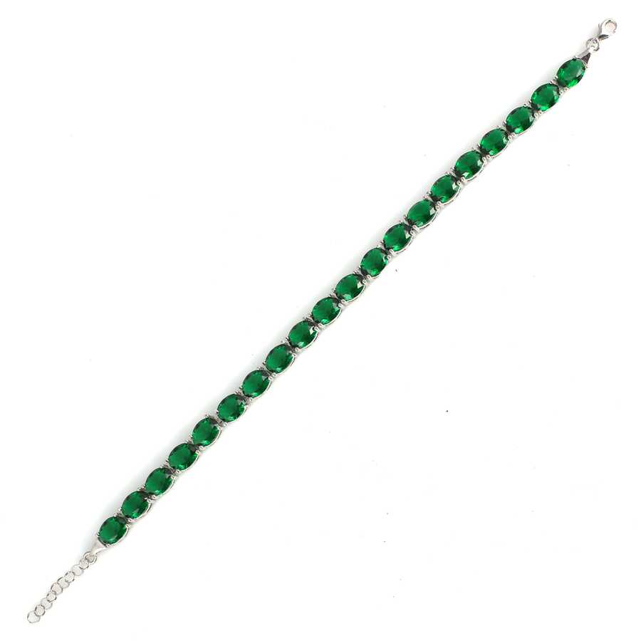925 Ayar Gümüş Sentetik Zümrüt Taşlı Büyük Boy Su Yolu Bileklik