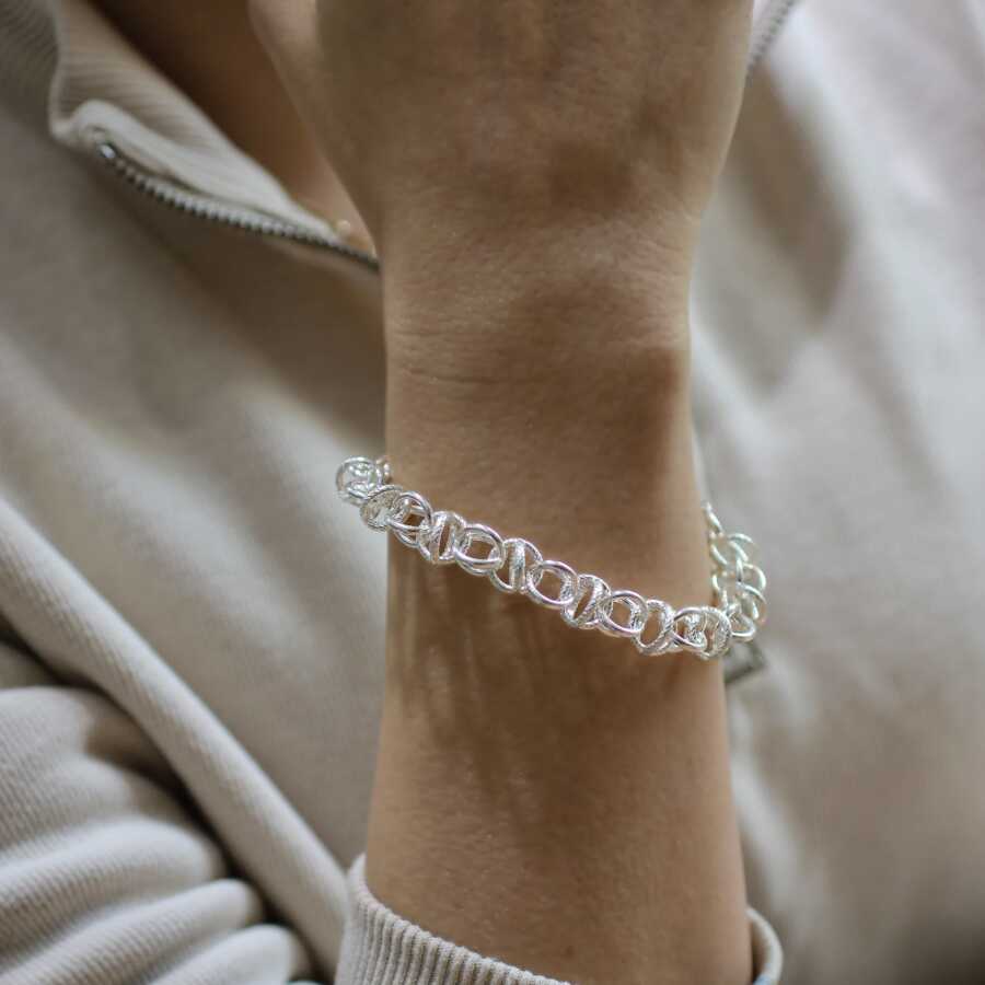 Gelince Haber Ver Bileklik 925 ayar gümüşten imal edilmiştir. Zincir bileklik 20 cm uzunluğundadır. Bileklik 1,0 cm genişliğinde ve 0,8 cm kalınlığındadır. Gümüş halkalardan bazıları setina desenlidir. Bileklik taşsızdır. Zincir bileklik gümüş renk rodajlıdır. Ağırlığı 17,51 gramdır.