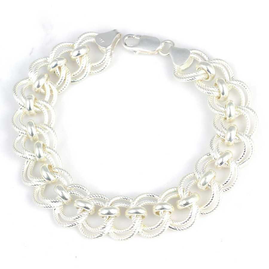 Gelince Haber VerBileklik 925 ayar gümüşten imal edilmiştir. Samanyolu zincir bileklik 21 cm uzunluğundadır. Bileklik 1,5 cm genişliğinde ve 0,8 cm kalınlığındadır. Bileklik setina desenlidir. Bileklik taşsızdır. Zincir bileklik gümüş renk rodajlıdır. Ağırlığı 29,3 gramdır.
