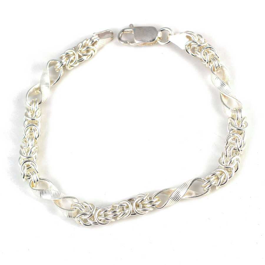 Gelince Haber Ver Bileklik 925 ayar gümüşten imal edilmiştir. Sonsuzluk model bileklik 20 cm uzunluğundadır. Bileklik 0,5 cm genişliğindedir. Gümüş ara parçalar 0,5 cm'ye 1,8 cm boyutlarındadır. Sonsuzluk şekli setina desenlidir. Bileklik taşsızdır. Zincir bileklik gümüş renk rodajlıdır. Ağırlığı 14,81 gramdır.