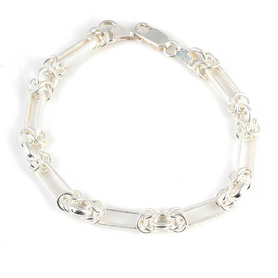 Notify me when its in stock Bileklik 925 ayar gümüşten imal edilmiştir. Setinalı şarnel bileklik 21 cm uzunluğundadır. Bileklik 0,6 cm genişliğindedir. Gümüş oval şarnel 0,6 cm'ye 1,2 cm boyutlarındadır. Oval şarnellerin üzeri setina desenlidir. Bileklik taşsızdır. Zincir bileklik gümüş renk rodajlıdır. Ağırlığı 18,35 gramdır.