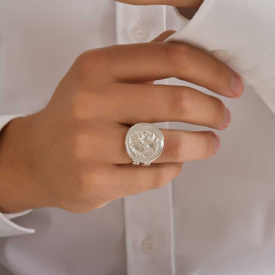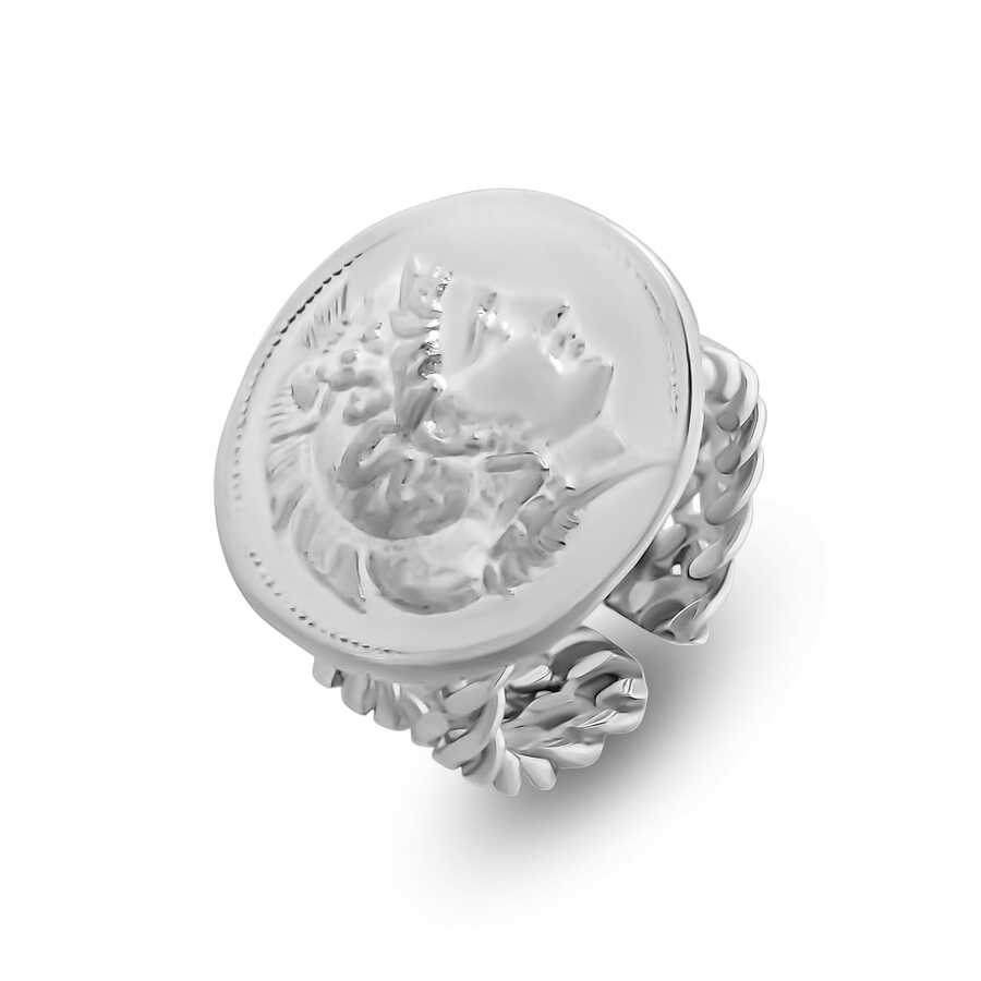 925 Ayar Gümüş Sezar Kafası Madalyon Yüzük