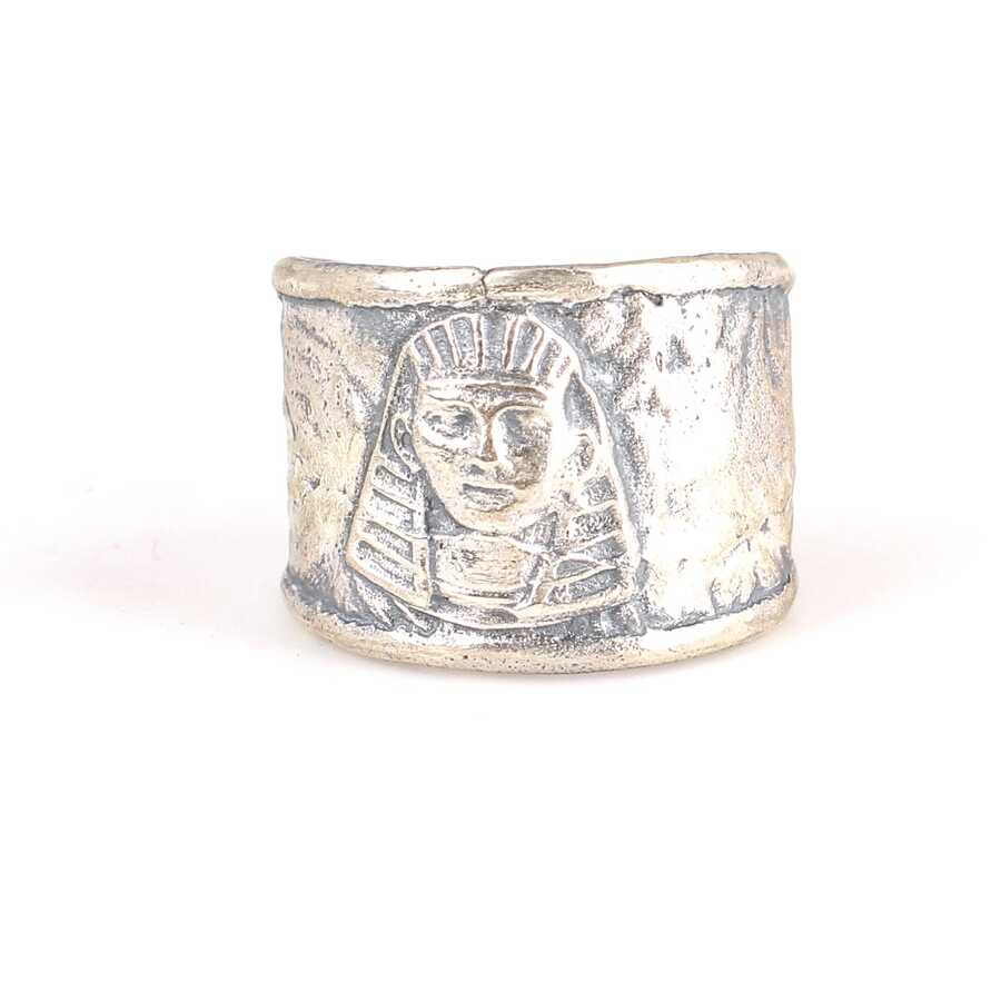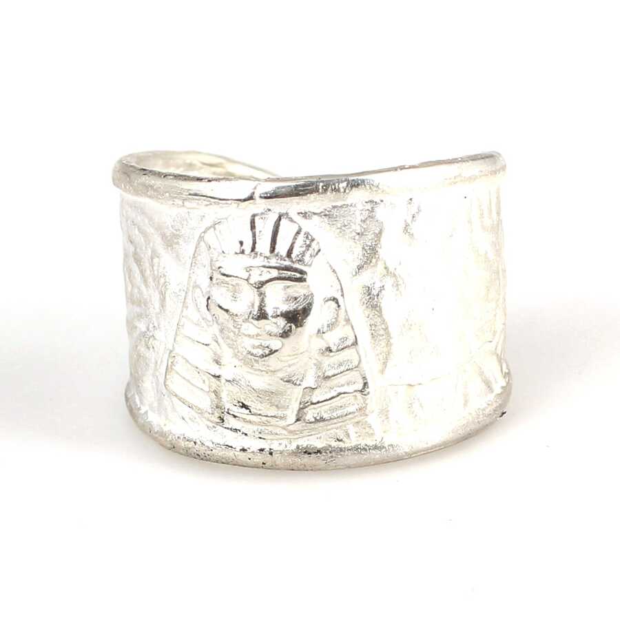 Yüzük 925 ayar gümüşten üretilmiştir. Firavun model yüzüğün üst kısmı 1,5 cm boyutlarındadır. Resimdeki yüzük 12 ölçüdür ancak yüzüğün altı açık ve ayarlanabilirdir. Yüzük taşsızdır. Ağırlığı 6,54 gramdır.