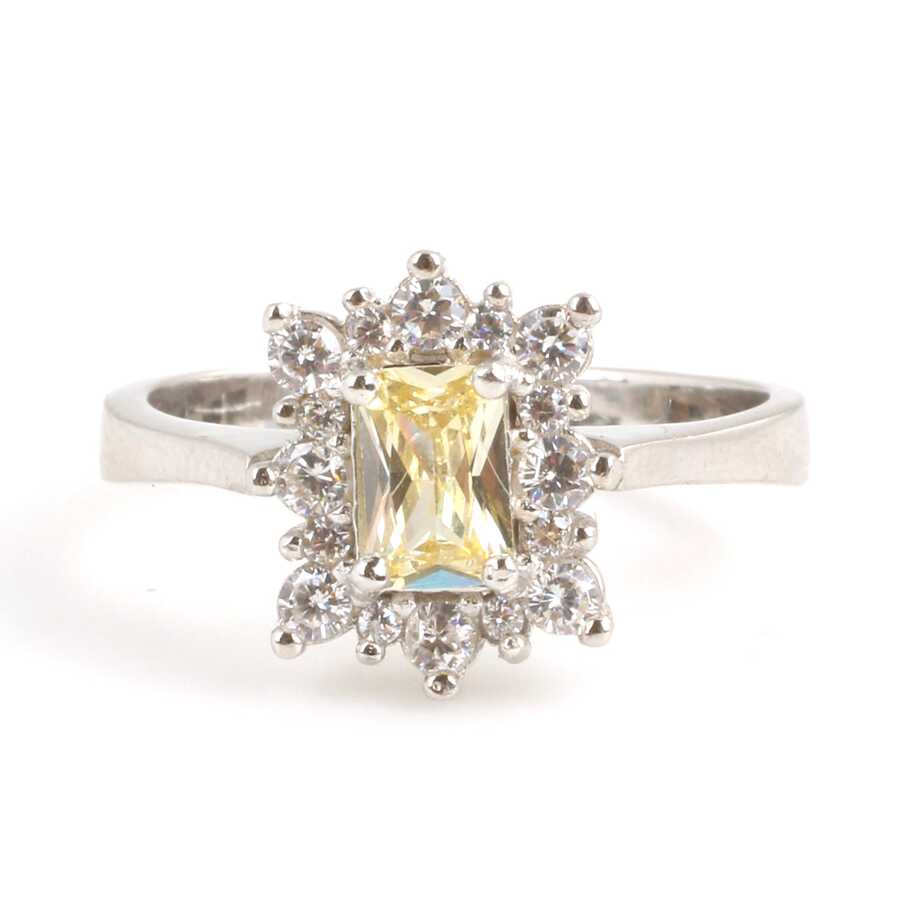 Yüzük 925 ayar gümüşten üretilmiştir. Dikdörtgen taşlı anturaj model yüzük 1,3 cm'ye 1,0 cm boyutlarındadır. Resimdeki yüzük 17 ölçüdür, ancak tüm ölçüler yapılabilmektedir. Yüzük zirkon ve sitrin renk taşlıdır. Ağırlığı 3,53 gramdır.