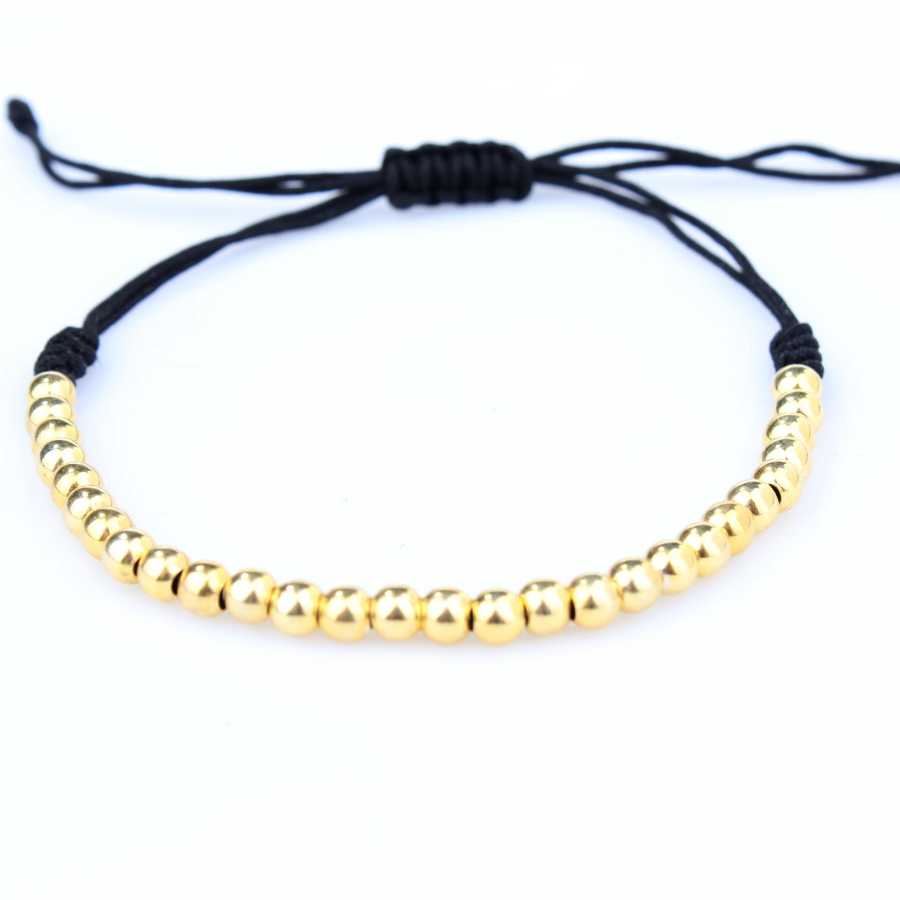 925 ayar gümüştür. Bileklik ölçüsü ayarlanabilir. 0,4 mm toplardan oluşur sarı renk toplar ve siyah renk ipten oluşur Gramı: 3,57 gr