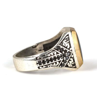 925 Ayar Gümüş Siyah Mineli Erkek Yüzük