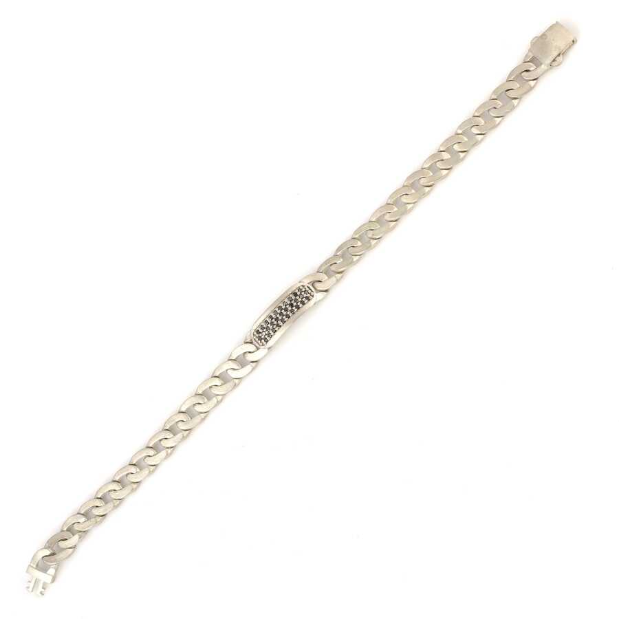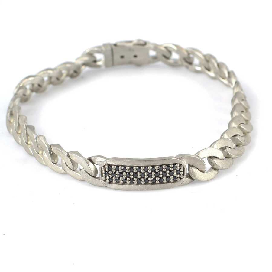 Bileklik 925 ayar gümüşten imal edilmiştir. Gurmet zincir model bileklik 19,5 cm uzunluğundadır. Bileklik 0,7 cm kalınlığındadır. Düz gurmet zincir bileklik 1,20 crt siyah pırlanta taşlıdır. Bileklik üzerinde 31 adet taş mevcuttur. Bileklik mat yapılmıştır. Ağırlığı 18,09 gramdır.