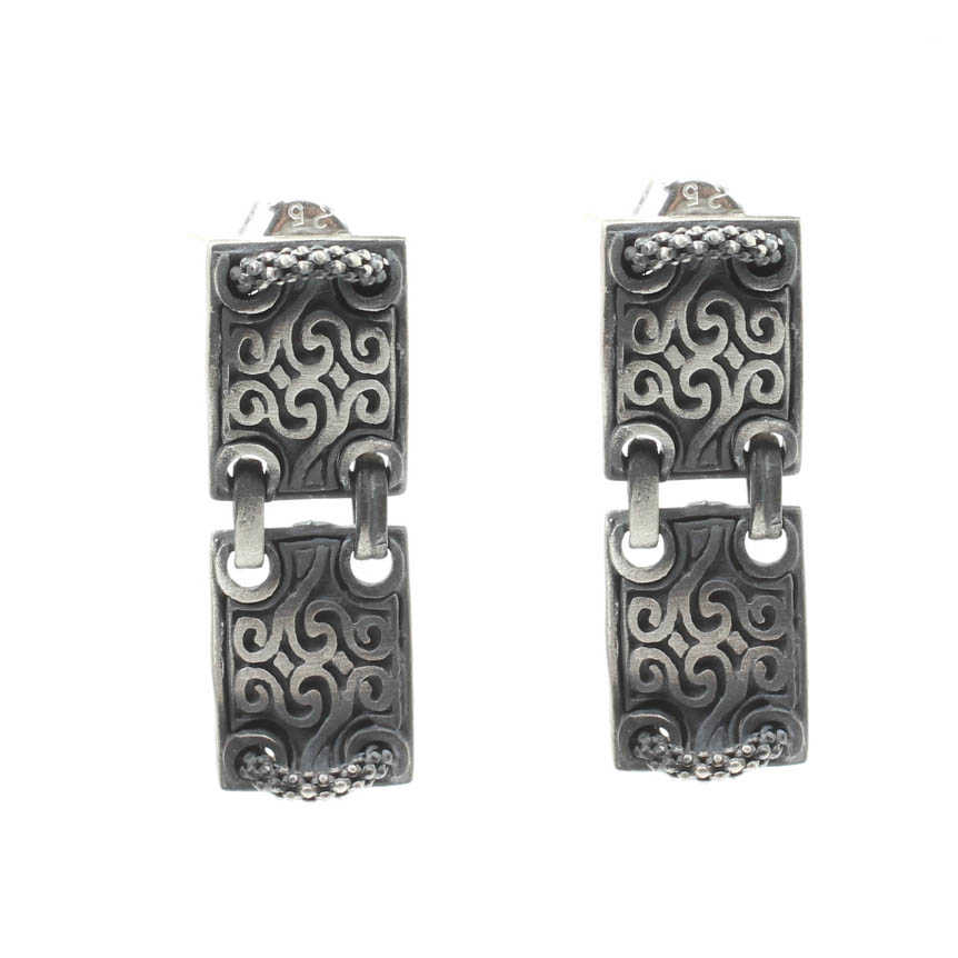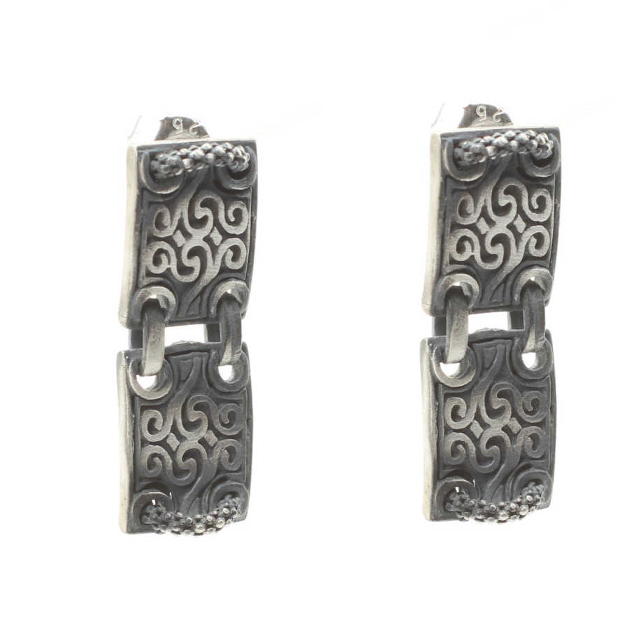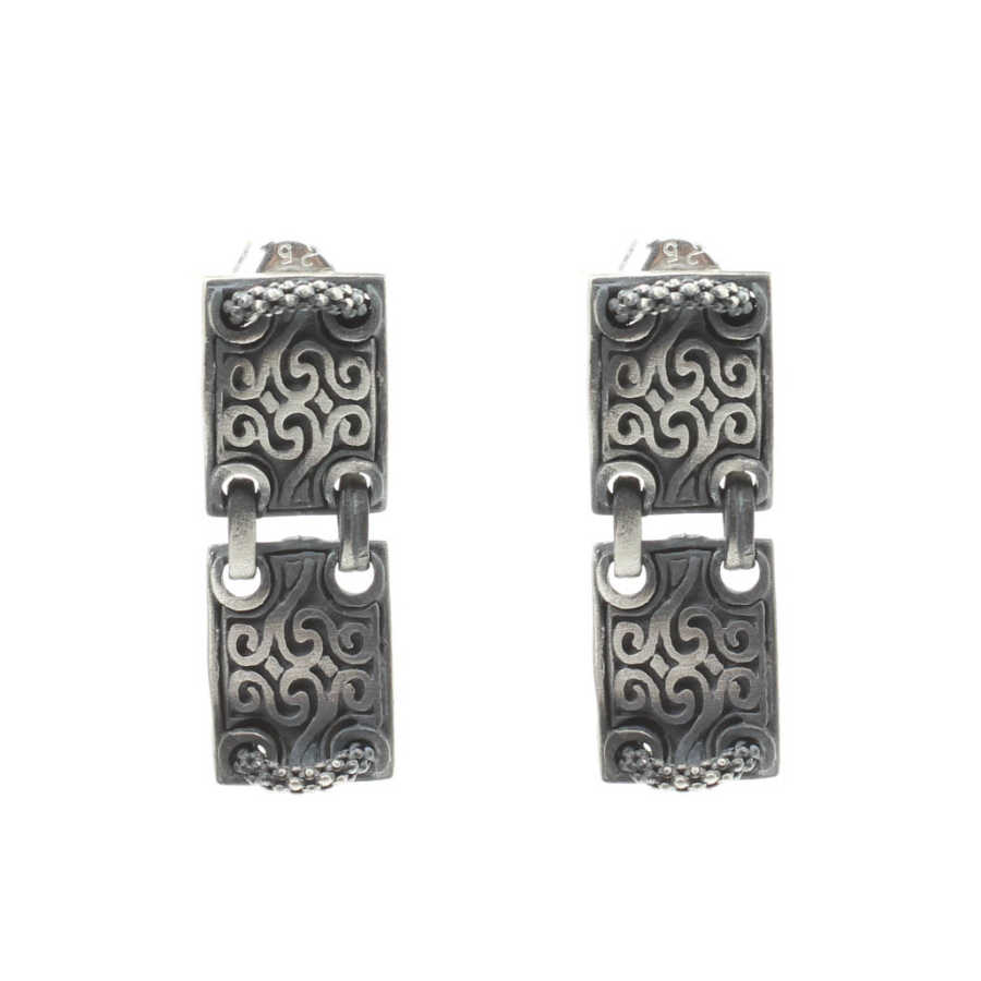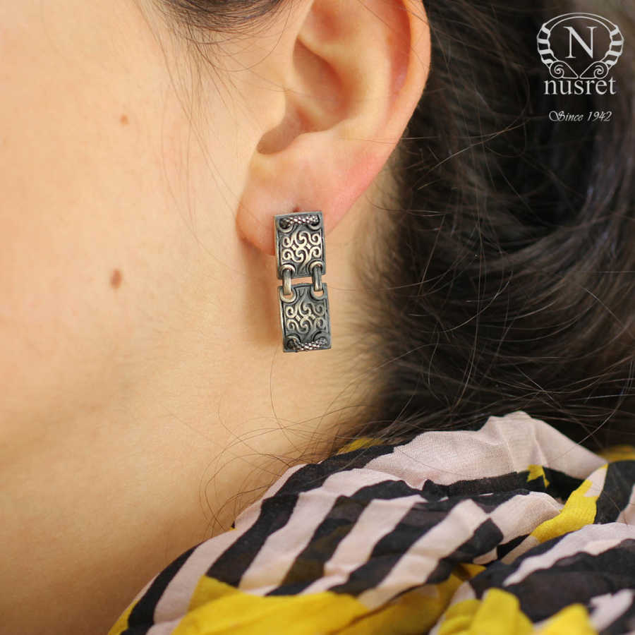 Gümüş küpe 925 ayar gümüşten yapılmıştır. Türk motifleri desenli küpe 2,6 cm'ye 1,0 cm boyutlarındadır. Küpe taşsızdır. Ağırlığı 6,64 gramdır.