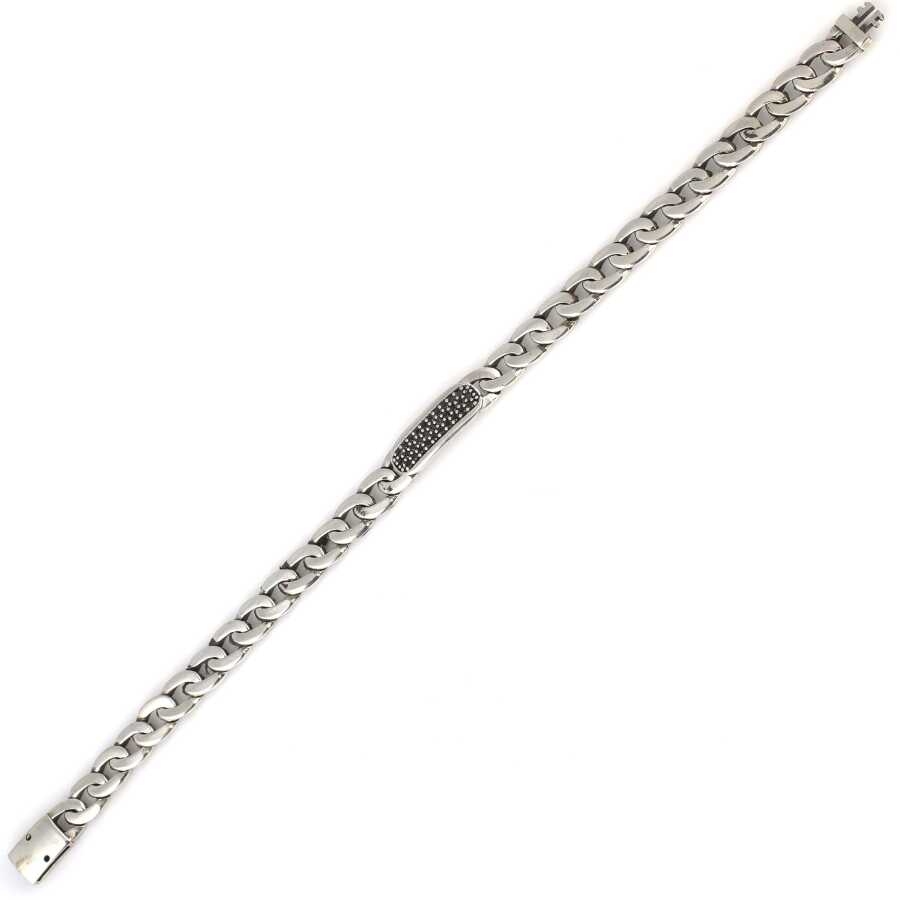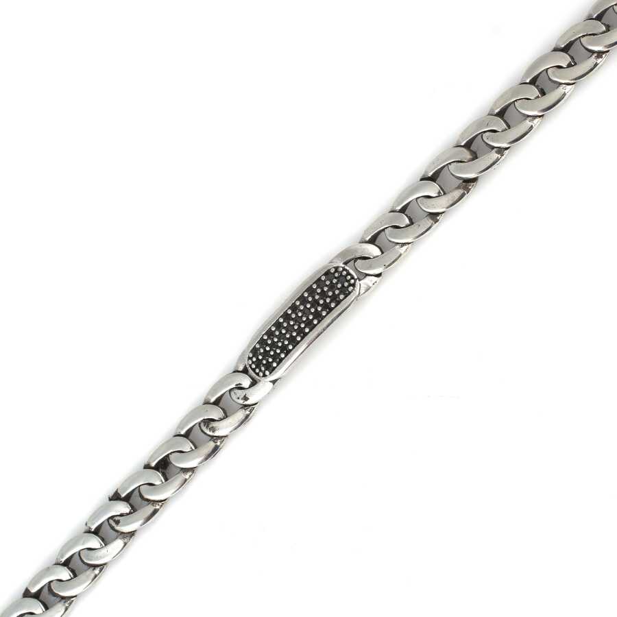 Bileklik 925 ayar gümüşten imal edilmiştir. Gurmet zincir model bileklik 19,5 cm uzunluğundadır. Bileklik 0,7 cm kalınlığındadır. Düz gurmet zincir bileklik siyah zirkon taşlıdır. Ağırlığı 18,72 gramdır.