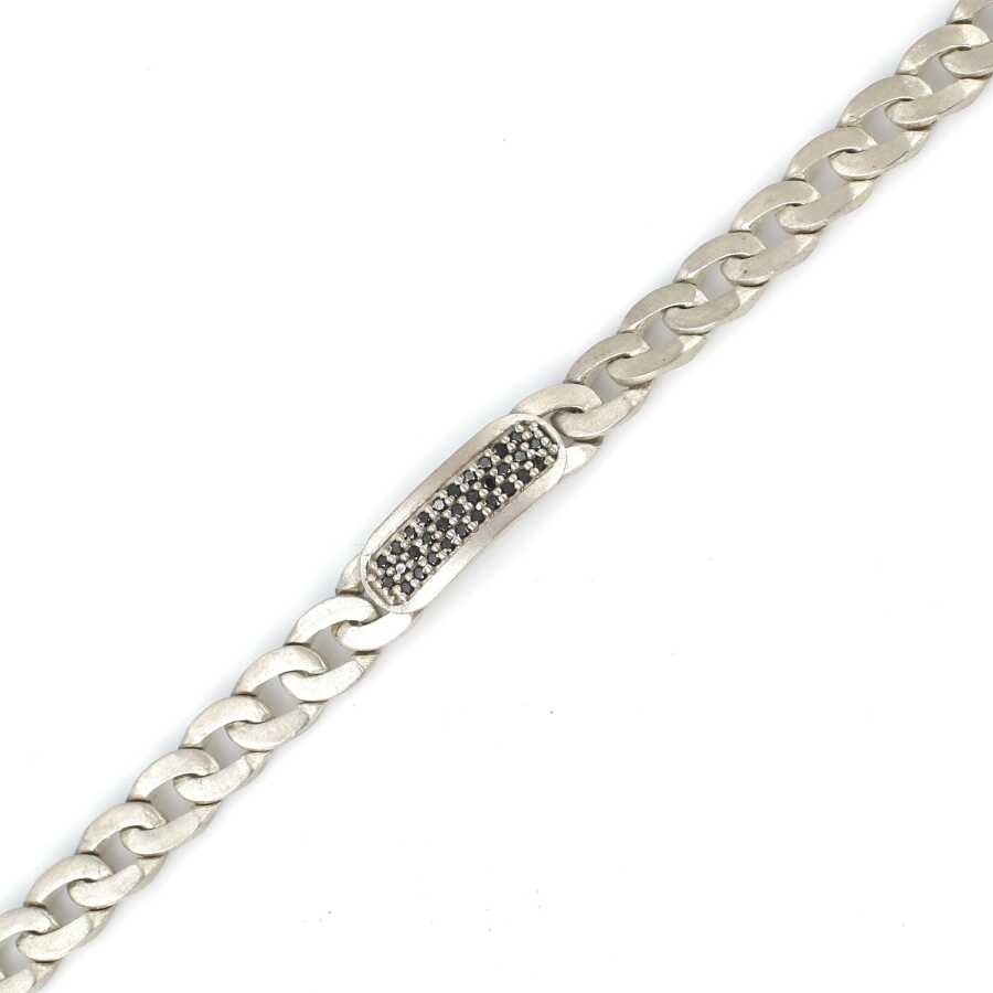 Bileklik 925 ayar gümüşten imal edilmiştir. Gurmet zincir model bileklik 19,5 cm uzunluğundadır. Bileklik 0,7 cm kalınlığındadır. Düz gurmet zincir bileklik siyah zirkon taşlıdır. Bileklik mat yapılmıştır. Ağırlığı 18,09 gramdır.