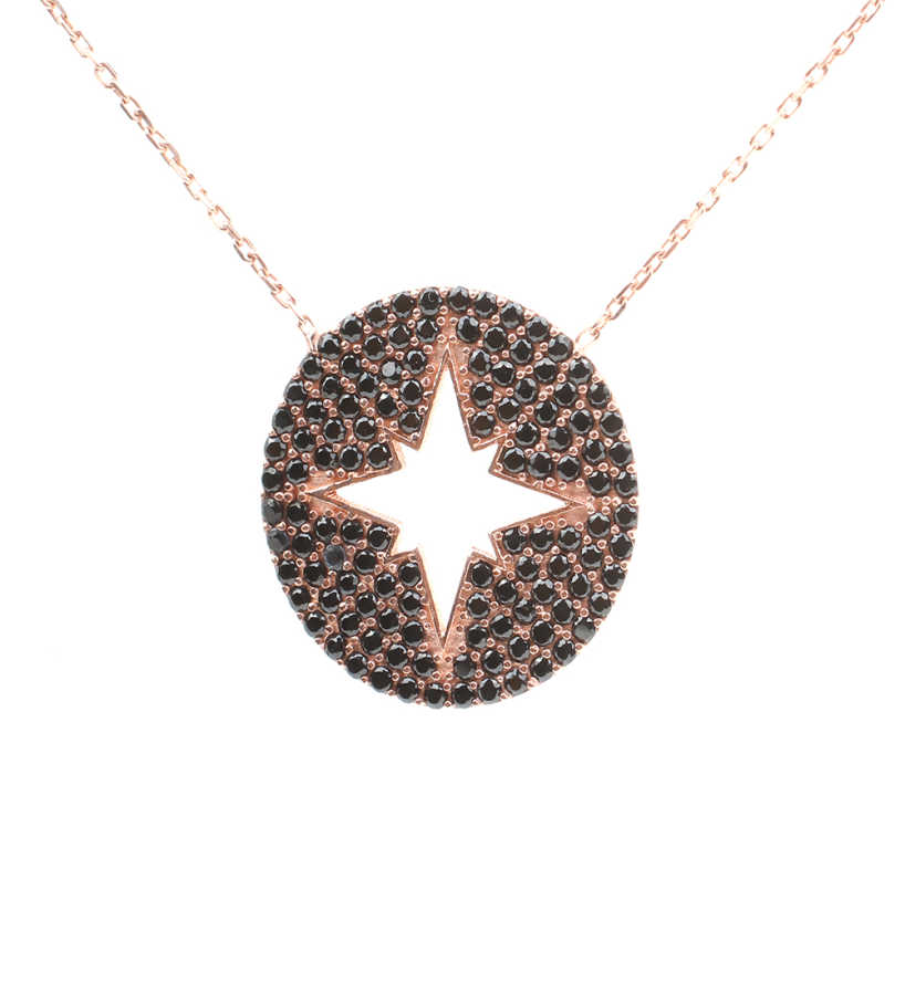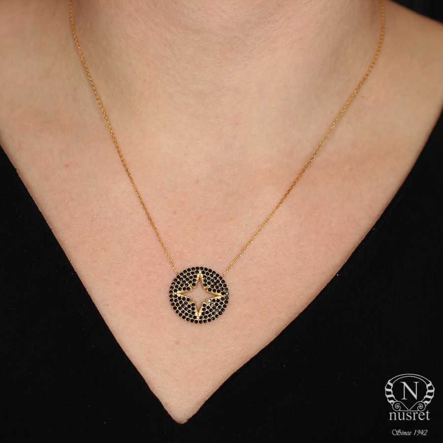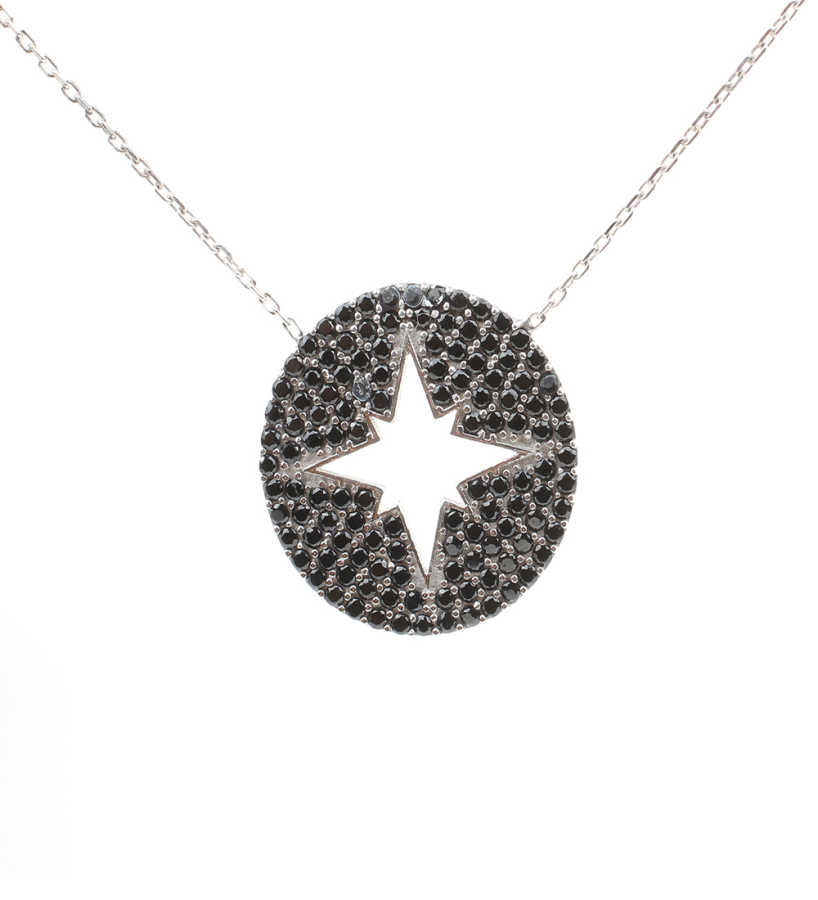 925 Ayar Gümüş Siyah Taşlı Kuzey Yıldızı Kolye