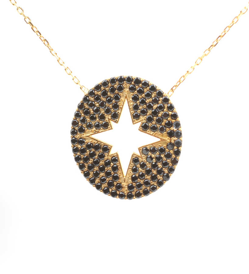 Gümüş kolye 925 ayar gümüşten yapılmıştır. Kuzey Yıldızı şeklindeki kolye 2 cm boyutlarındadır. Zinciri 45 cm uzunluğundadır ve taşları siyah zirkondur. Ağırlığı 2,8 gramdır.