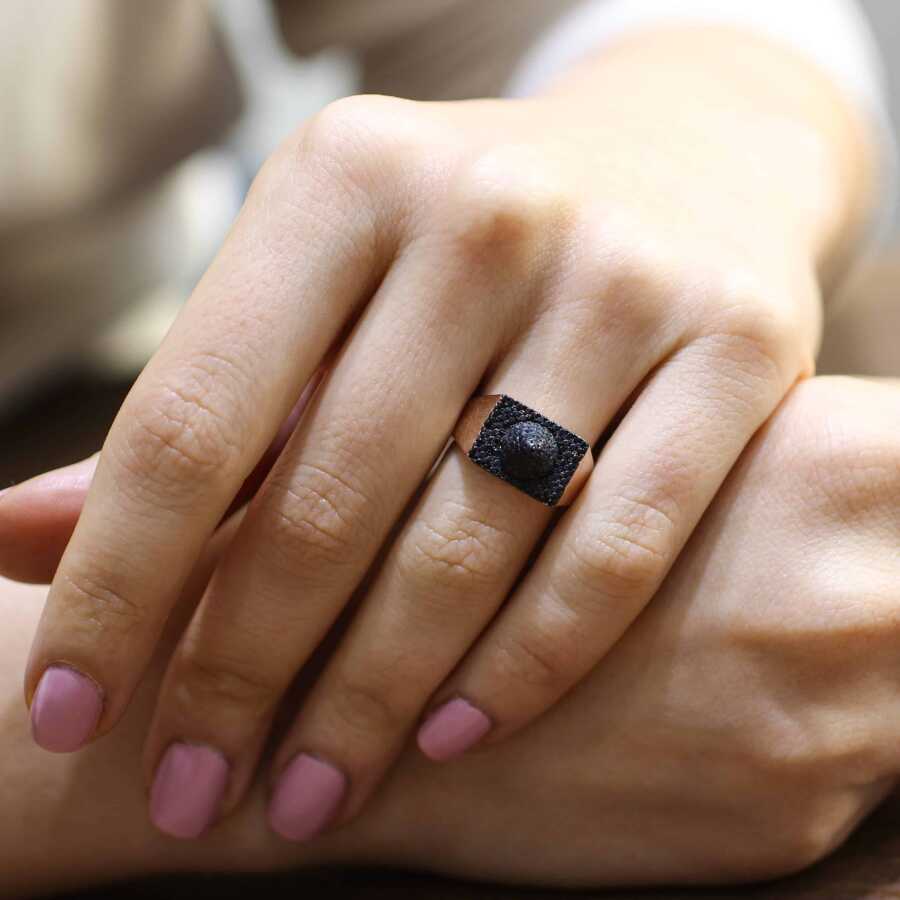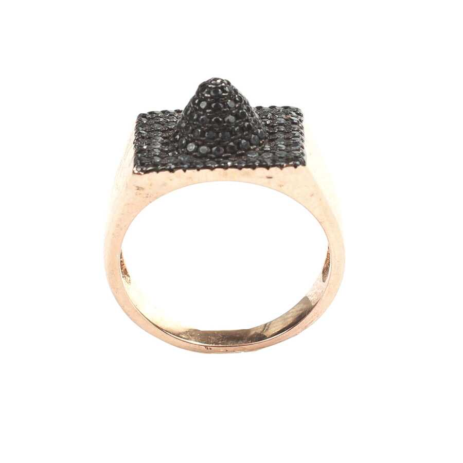 925 Ayar Gümüş Siyah Taşlı Şapka Tasarım Yüzük