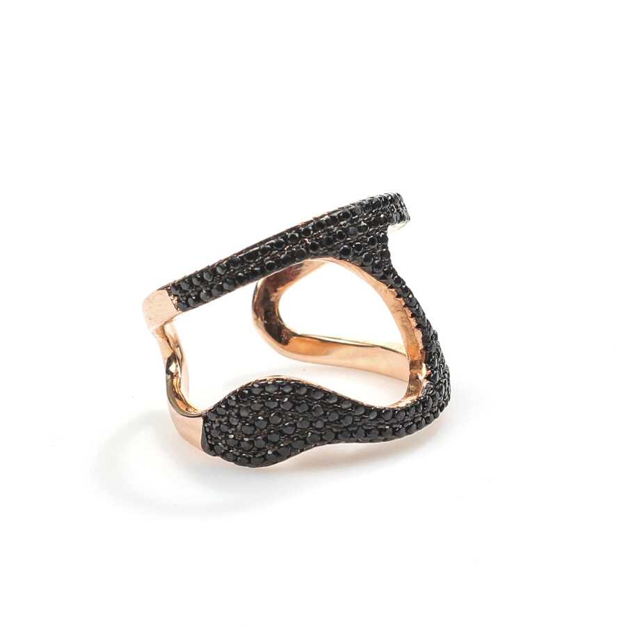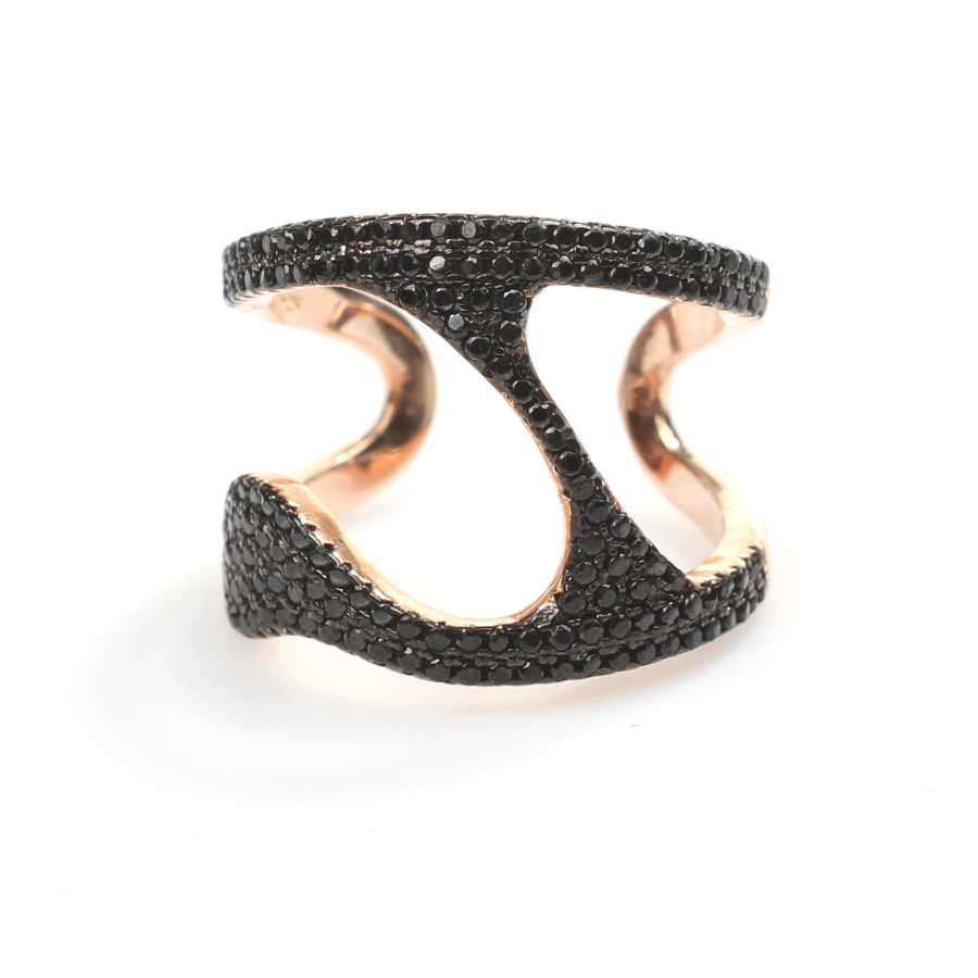 925 Ayar Gümüş Siyah Taşlı Tasarım Yüzük
