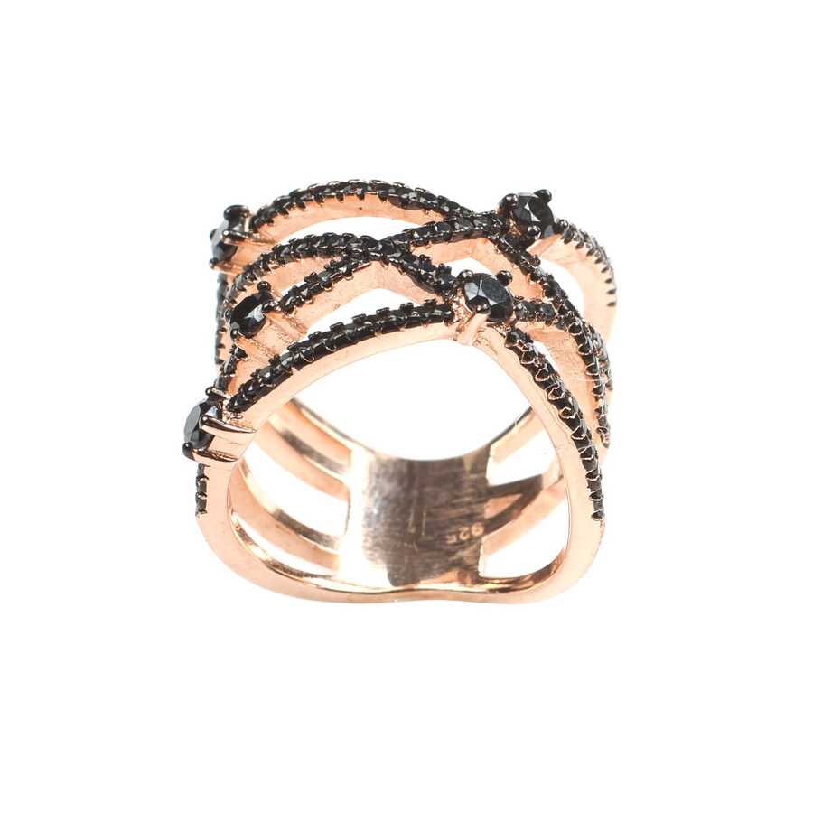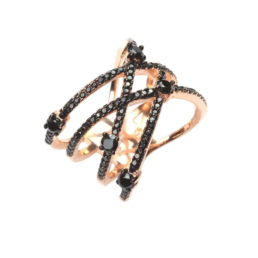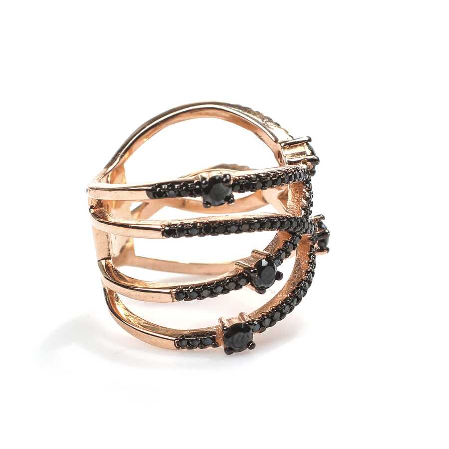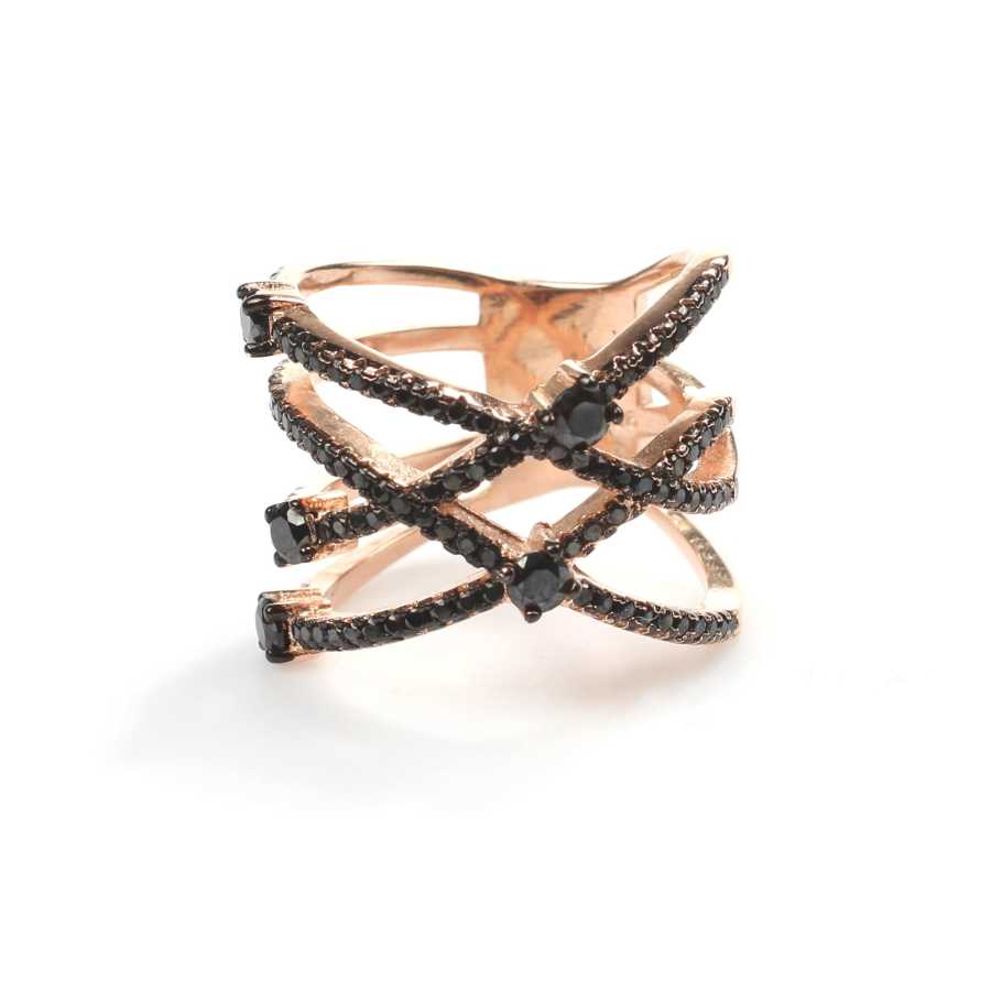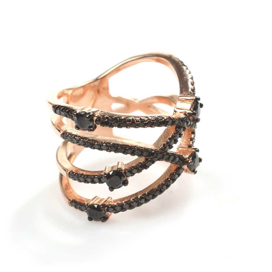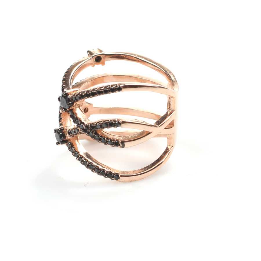 925 Ayar Gümüş Siyah Taşlı XX Model Pembe Renkli Yüzük