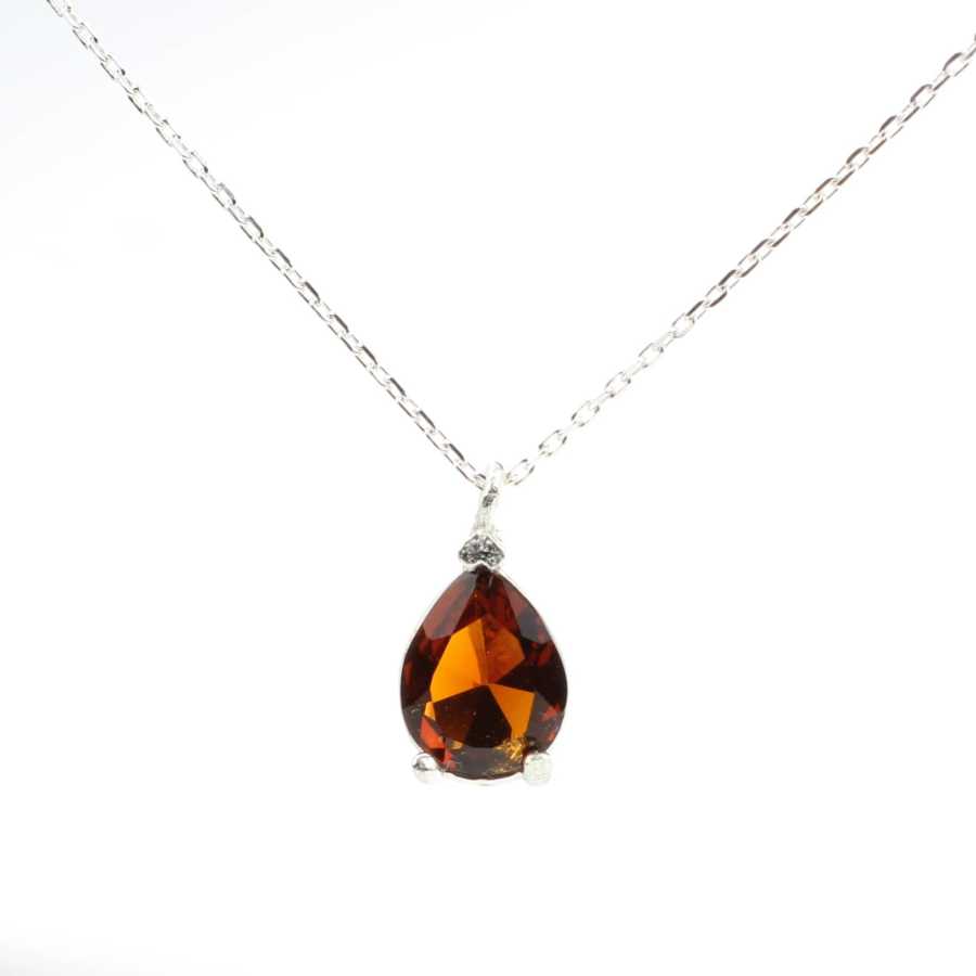 Gümüş kolye 925 ayar gümüşten yapılmıştır. Damla 3 tırnaklı kolye 0,8 cm'ye 1,2 cm boyutlarındadır. Zinciri 45 cm uzunluğundadır ve taşları dumanlı kuvars renk zirkondur. Ağırlığı 2,6 gramdır.