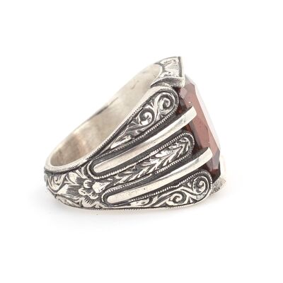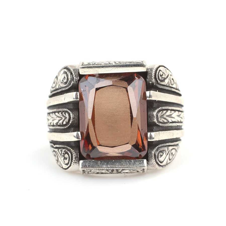 Yüzük 925 ayar gümüşten üretilmiştir. Yüzüğün üzerinde el kalemi atılarak tasarlanmıştır. Taşlı yüzük 2,0 cm'ye 1,3 cm boyutlarındadır. Resimdeki yüzük 25 ölçüdür, ancak tüm ölçüler özel olarak yapılabilmektedir. Yüzük dumanlı kuvars renk taşlıdır. Ağırlığı 21,3 gramdır.
