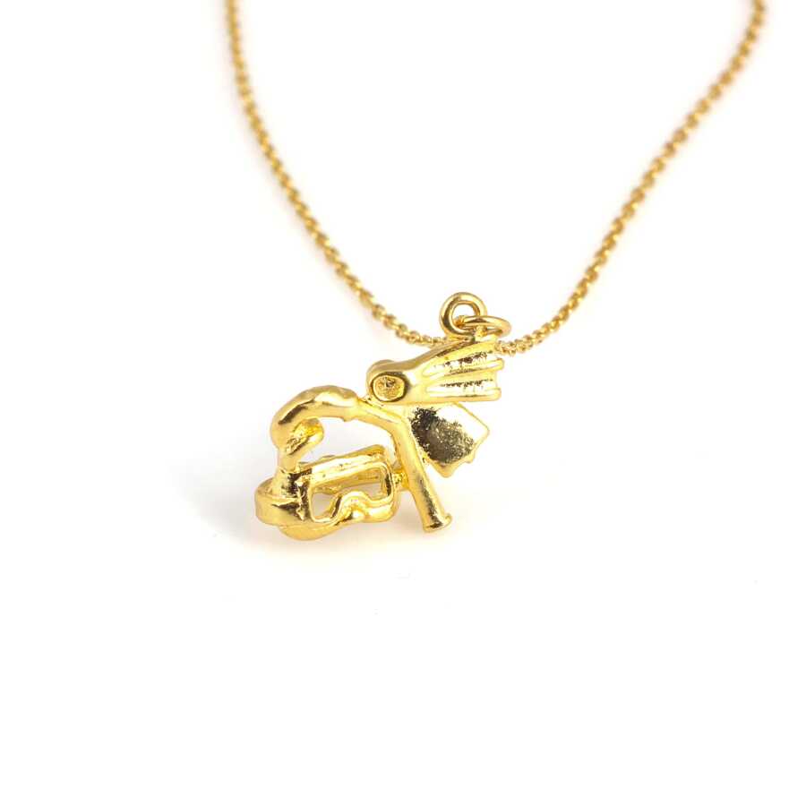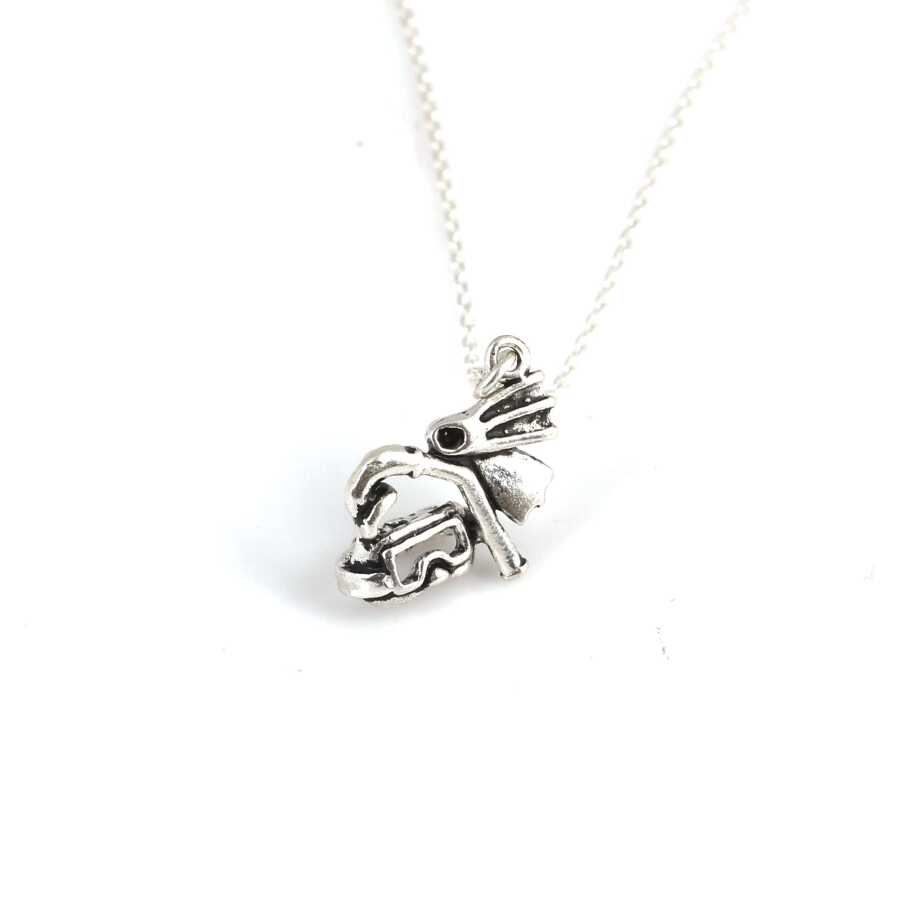 925 Ayar Gümüş Şnorkel ve Palet Deniz Temalı Charm Kolye