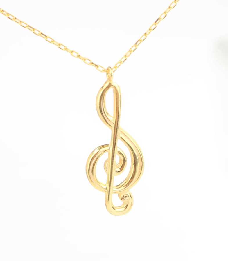 Sterling Silver Treble Clef Pendant Necklace, Gold Vermeil