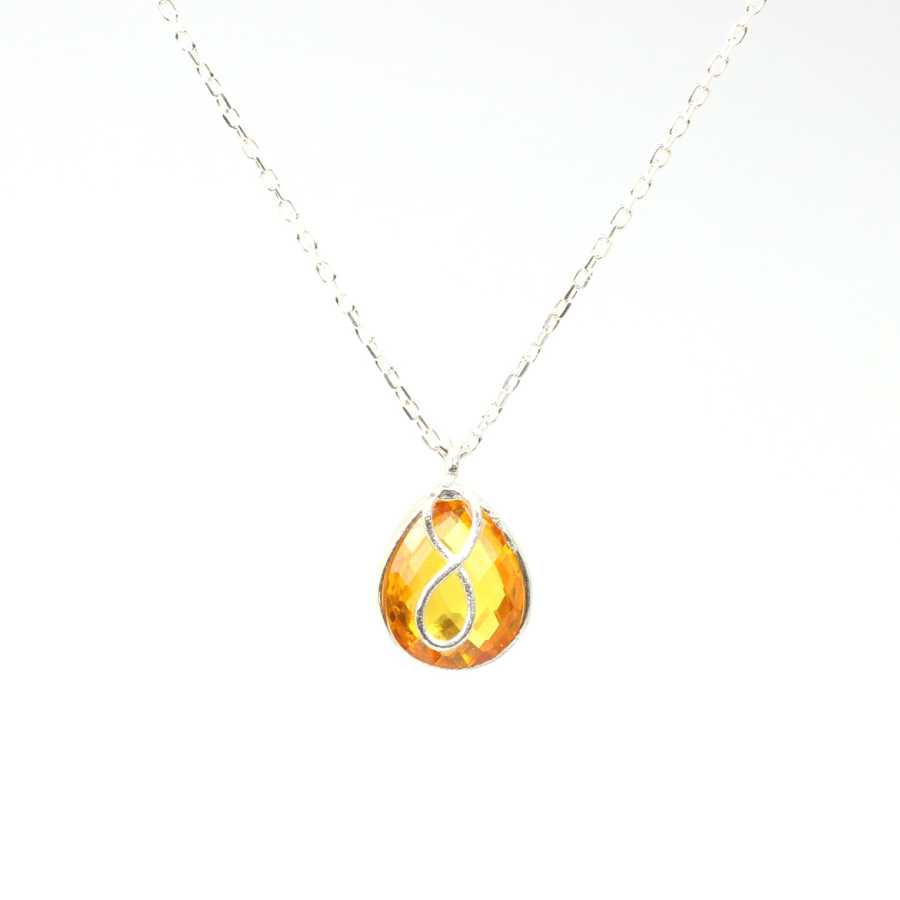 925 Ayar Gümüş Sonsuzluk Damla Sitrin Kolye