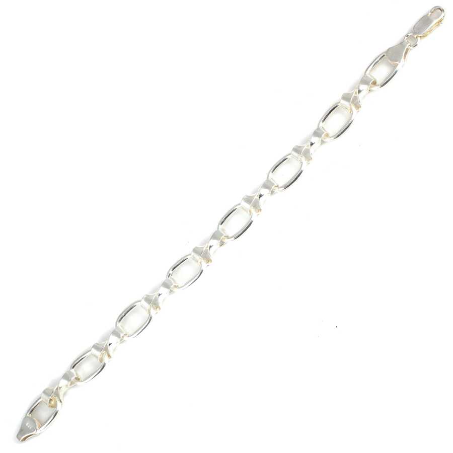 Gelince Haber Ver Bileklik 925 ayar gümüşten imal edilmiştir. Sonsuzluk bileklik 21 cm uzunluğundadır. Bileklik 0,7 cm genişliğindedir. Gümüş oval şarnel 0,7 cm'ye 1,1 cm ve sonsuzluk 0,7 cm'ye 1,5 cm boyutlarındadır. Bileklik taşsızdır. Zincir bileklik gümüş renk rodajlıdır. Ağırlığı 14,97 gramdır.