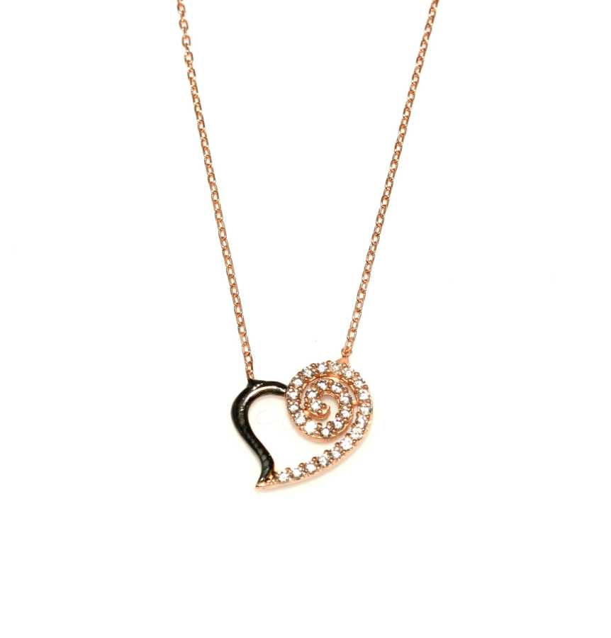 Notify me when its in stock925 Sterling Silver, Spiral Heart Dainty Necklace with white Cz - Pendant Size: 1,5 x 1,3 cm, Chain Size: 42 cm - Weight: 1,95 g