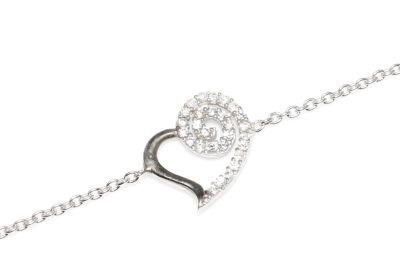 925 Ayar Gümüş Spiral Kalp Modeli Zincir Bileklik, Beyaz Siyah - Beyaz Taş