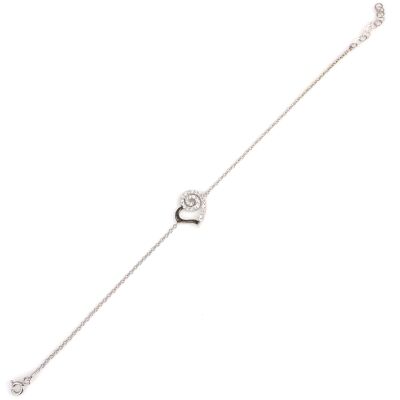 Bileklik 925 ayar gümüşten imal edilmiştir. Taşlı bileklik 20,5 cm uzunluğundadır. Spiral Kalp figürü 1,5 cm boyutlarındadır. Bileklik zirkon taşlıdır. Gümüş bileklik 1,75 gram ağırlığındadır.