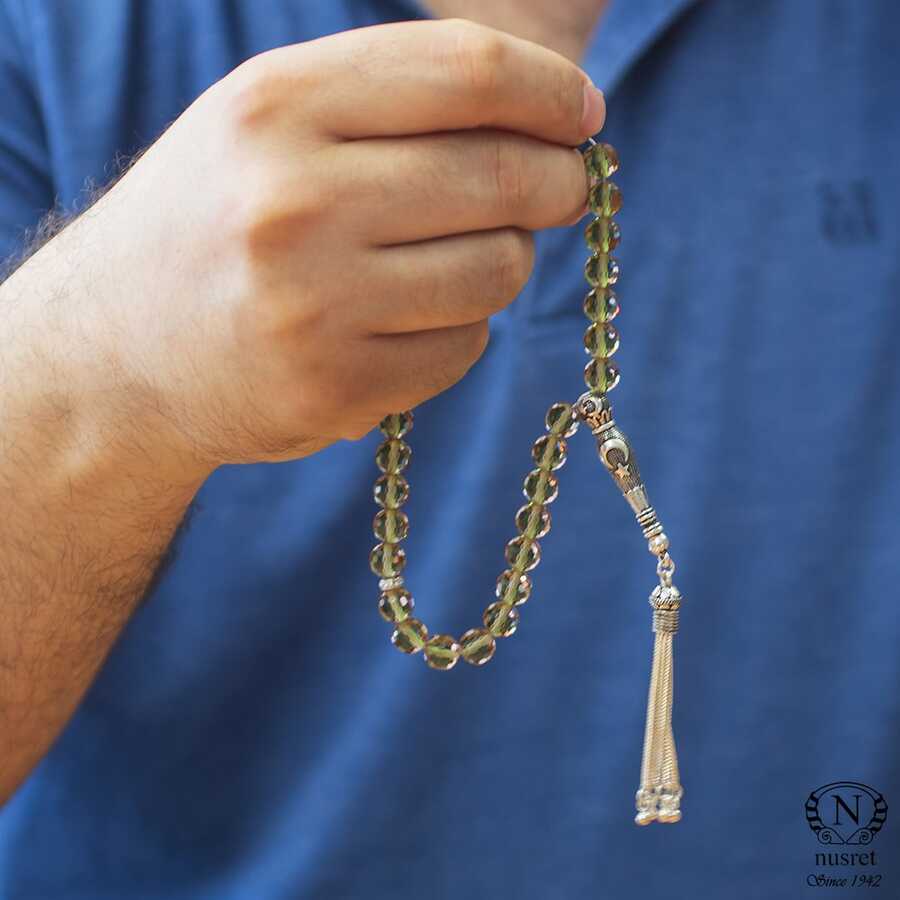 925 Ayar Gümüş Sulanyt Taşlı Yuvarlak Fasetli Tesbih