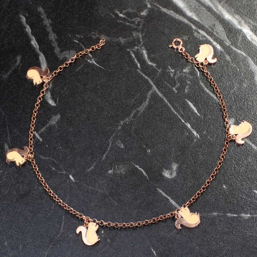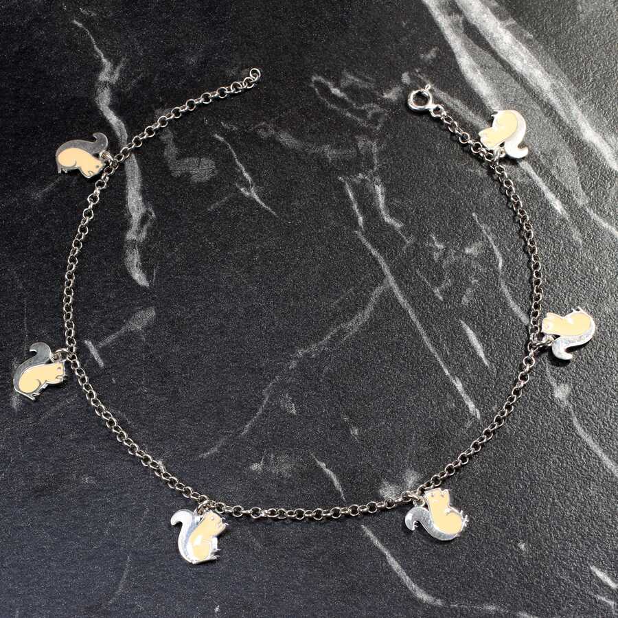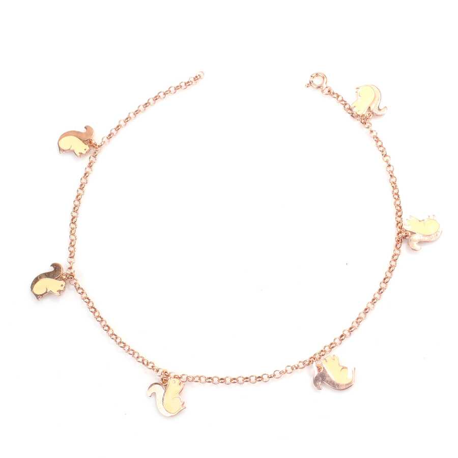 925 Ayar Gümüştür. 25 cm uzunluğunda 6 adet sütlü kahverengi mineli Sincap'ın doç zincir üzerine takılarak imal edilen .Sarı , Pembe , veya Beyaz renklerden mamul halhaldır. Gramı: 5,6 gr925 Ayar Gümüş Sütlü Kahve Renkli Sincap Halhal
