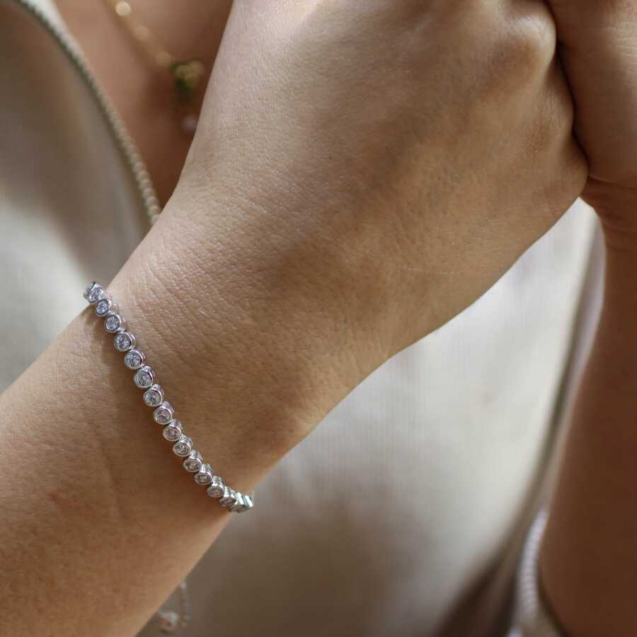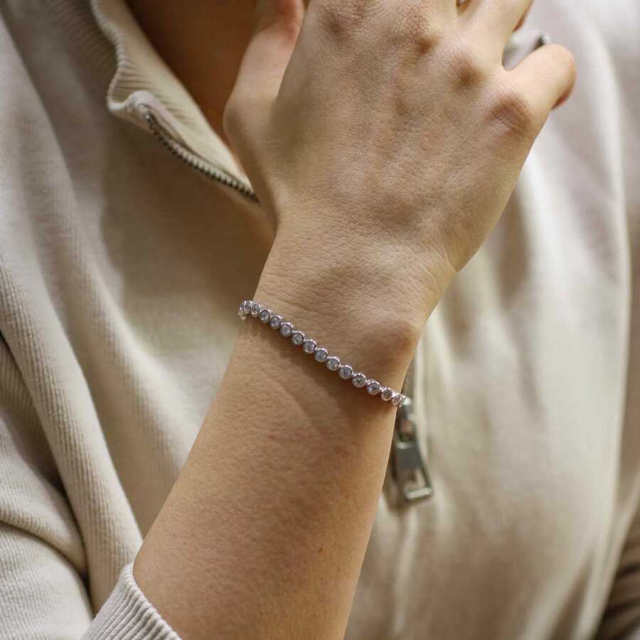 Gümüş bileklik 925 ayar gümüşten yapılmıştır. Gümüş asansörlü suyolu bileklik 0,4 cm taş yuvalı ve 8,0 cm uzunluğundadır. Asansör bileklik zirkon taşlıdır. Ağırlığı 7,76 gramdır.