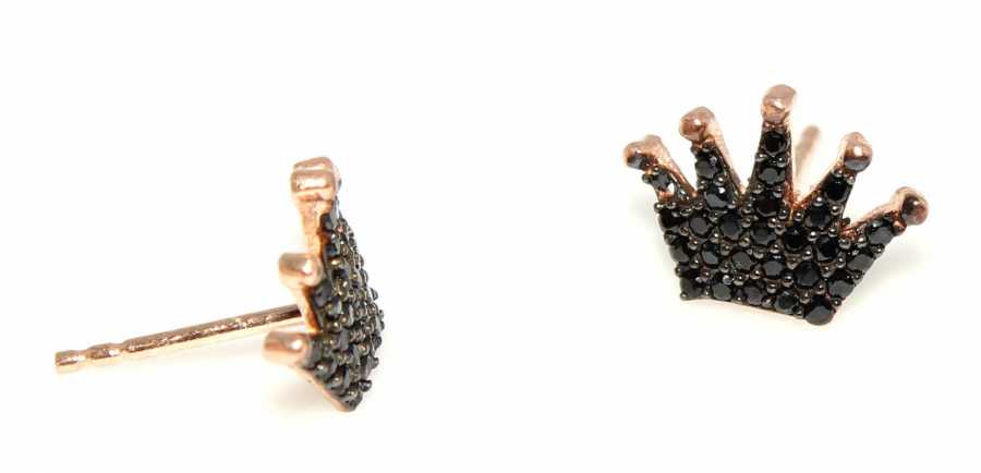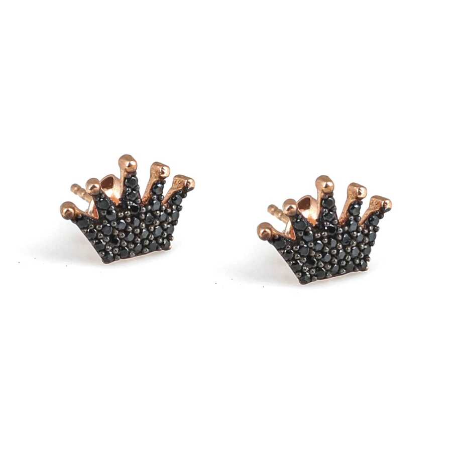 925 Rose Silver Crown Model Stud Earrings, Black Zircon