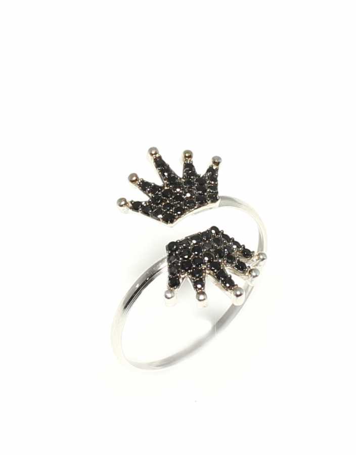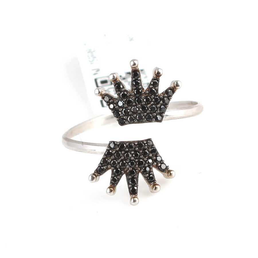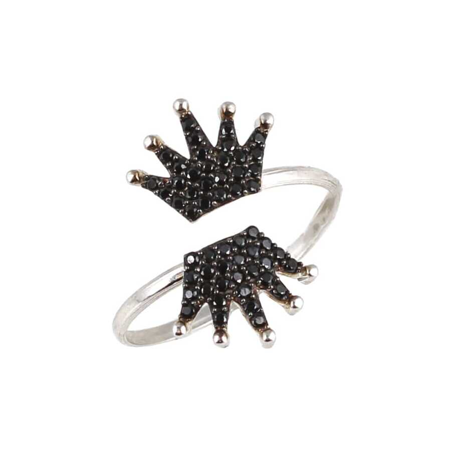 925 Ayar Gümüş 2'li Taç Yüzük, Beyaz - Siyah Taş
