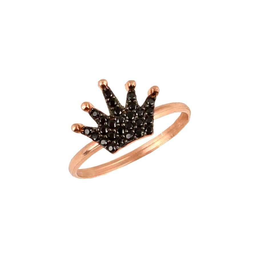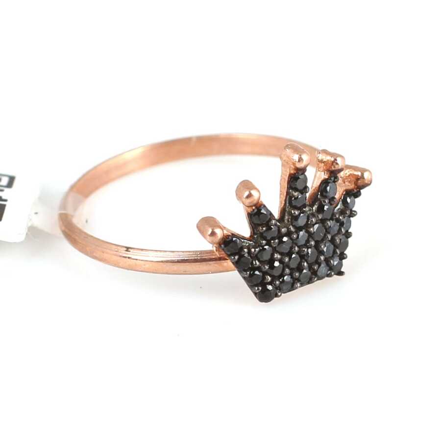 925 Ayar Gümüş Taç Yüzük, Pembe - Siyah Taş