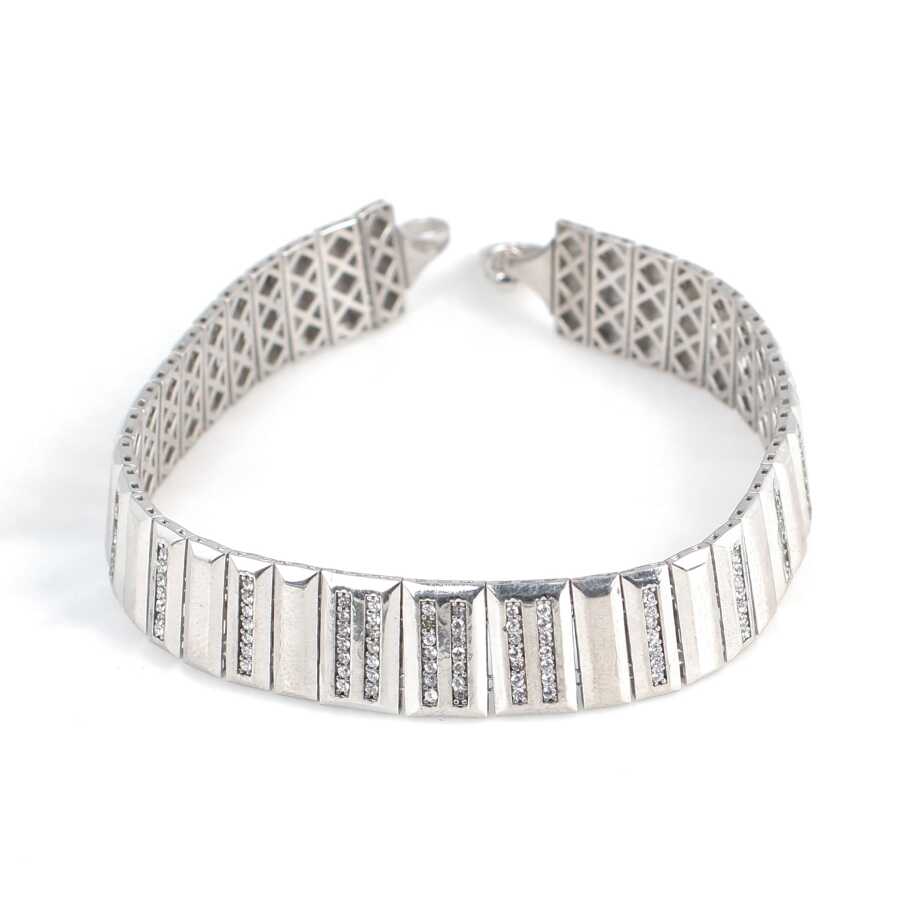 Bileklik 925 ayar gümüşten imal edilmiştir. Füzyon model bileklik 19,5 cm uzunluğundadır. Bileklik 1,2 cm enindedir. Bileklik zirkon taşlıdır. Gümüş bileklik 11,45 gram ağırlığındadır.