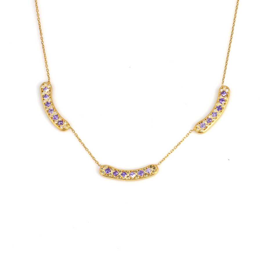 925 Ayar Gümüş Taşlı Kolye, Sarı - Mor Beyaz Taş