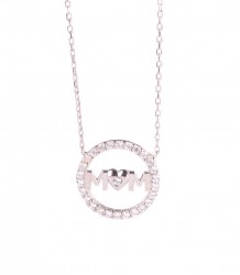 925 Ayar Gümüş Taşlı Mom Yazılı Kolye, Beyaz