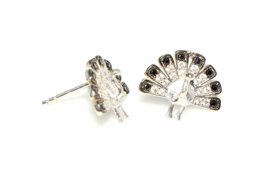 925 Silver Peacock Stud Earrings, Black Zircon