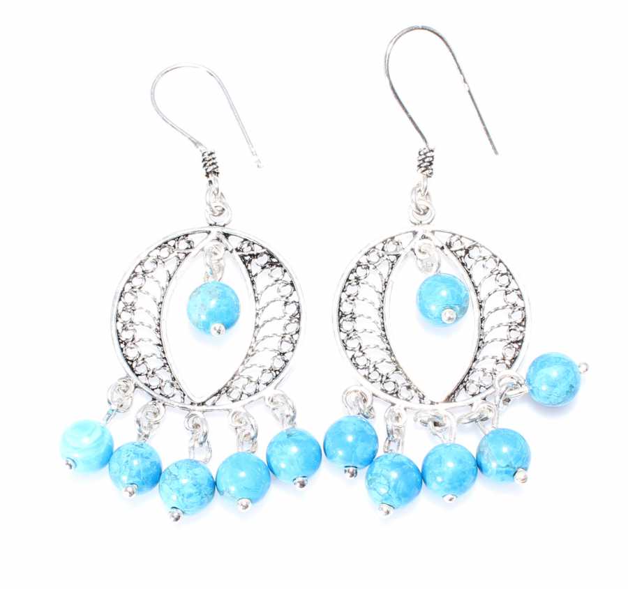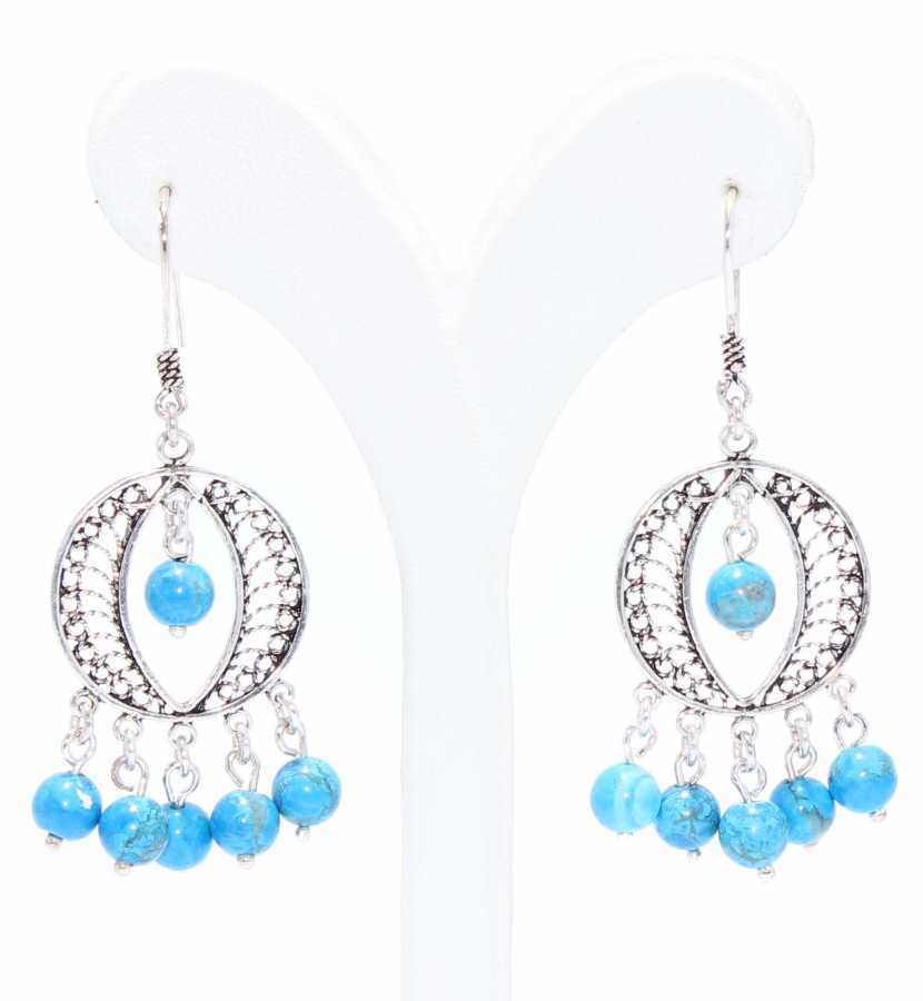 925 Ayar Gümüş Telkari Firuze Taş Sallantılı Küpe